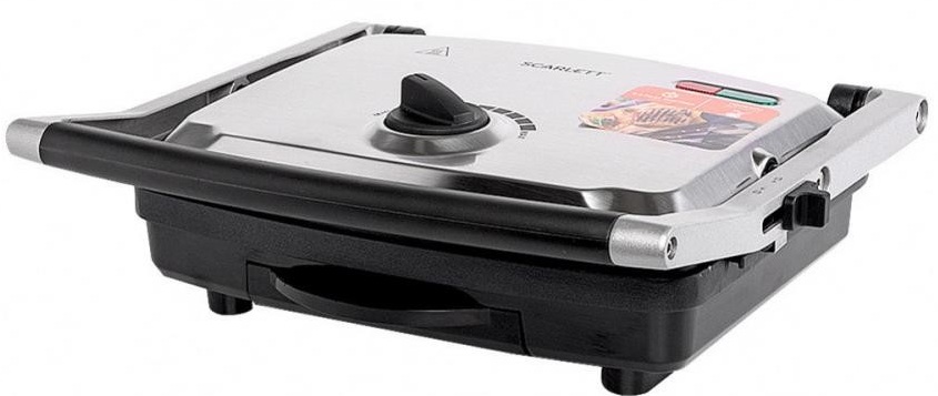 Este modelo pode ser usado como uma grade aberta e fechada. Tem um elemento de aquecimento de cerâmica, que contribui para o calor forte uniforme. Há uma função de fusão para fazer sanduíches, lanches com queijo. Canais especiais de remoção de gordura permitem que os alimentos permaneçam apetitosos e saudáveis.