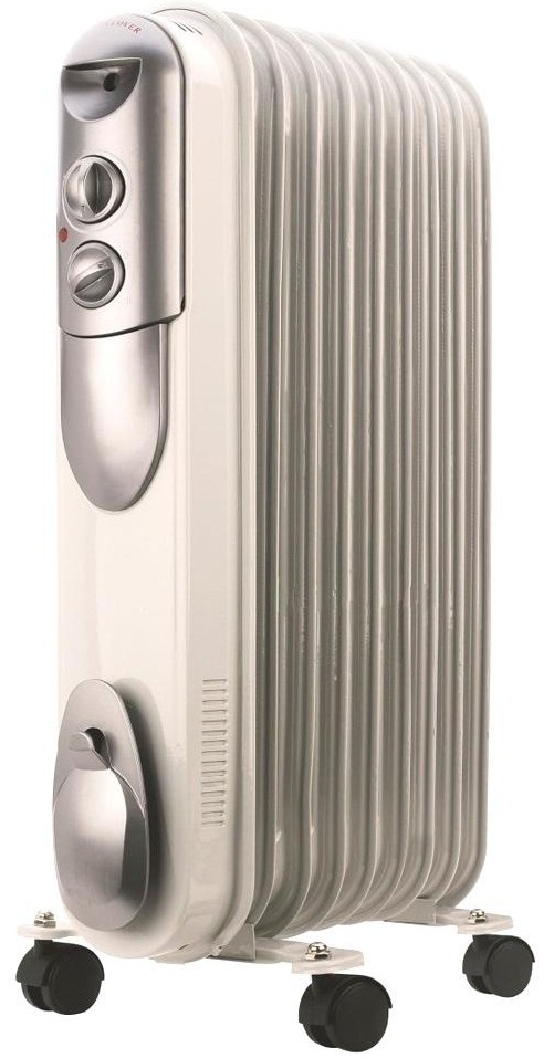 Aquecedor de óleo de chão conhecida marca chinesa. Devido a sua alta potência e nove seções, é capaz de aquecer ambientes de até 20 m². Dois modos de aquecimento permitem ajustar a temperatura.