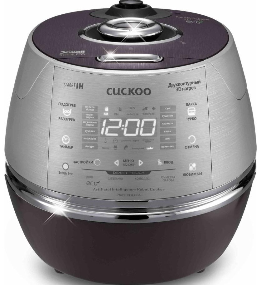 Multivarka realizado em um design elegante, refere-se à classe premium. A marca coreana Cuckoo declara este modelo como um robô cozinheiro com inteligência artificial. Tem muitas vantagens e justifica plenamente o seu preço.