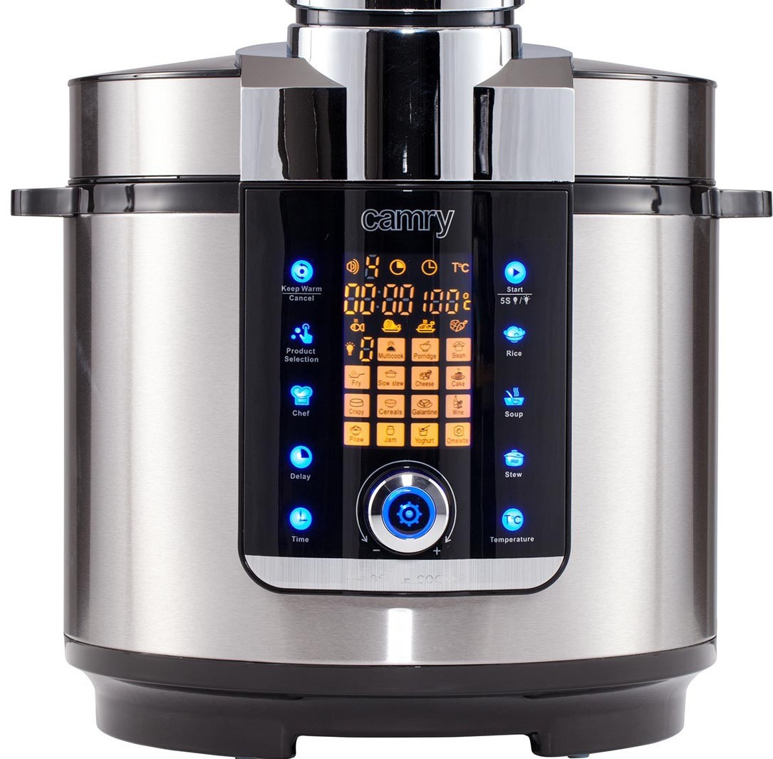 A panela de pressão multi-fogão é um aparelho multifuncional e conveniente que substituirá vários equipamentos na cozinha. Dezessete modos pré-programados irão ajudá-lo a cozinhar rapidamente qualquer prato. O volume é de 5 litros, e seu revestimento é de cerâmica, duplo, não absorve odores, alimentos não aderem a ele. O controle por botão de pressão tornará o manuseio do dispositivo claro e confortável.