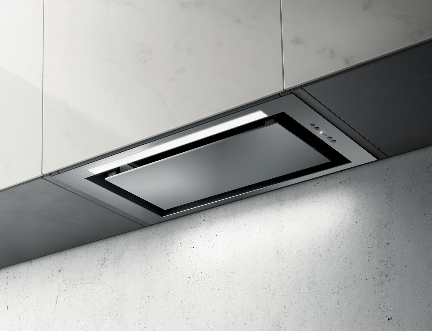 O capô embutido da empresa italiana Zirtal tem um design moderno e facilidade de gerenciamento. Ele fornece ar limpo devido à potência de 950 m3 / h, além de um trabalho confortável graças à iluminação embutida.