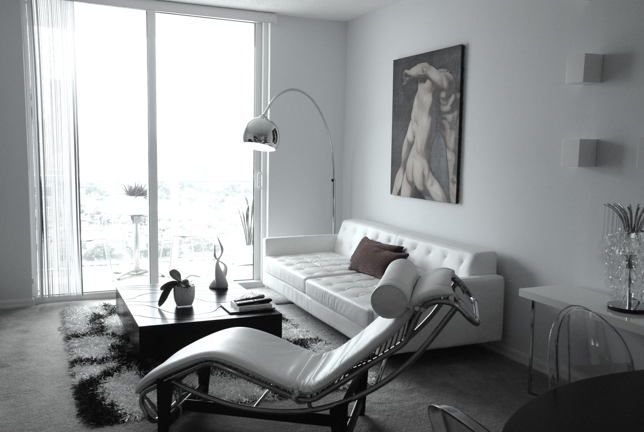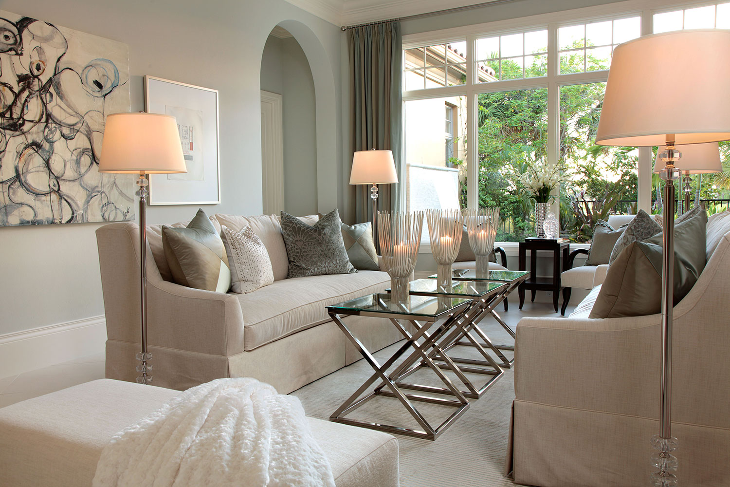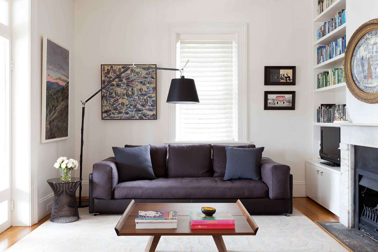 As lâmpadas de assoalho são usadas para preencher o vazio do espaço, para criar conforto. Por exemplo, quando há um lugar em ambos os lados do sofá, lareira, prateleiras. Colocação em ambos os lados visualmente cria simetria e uma certa ordem.