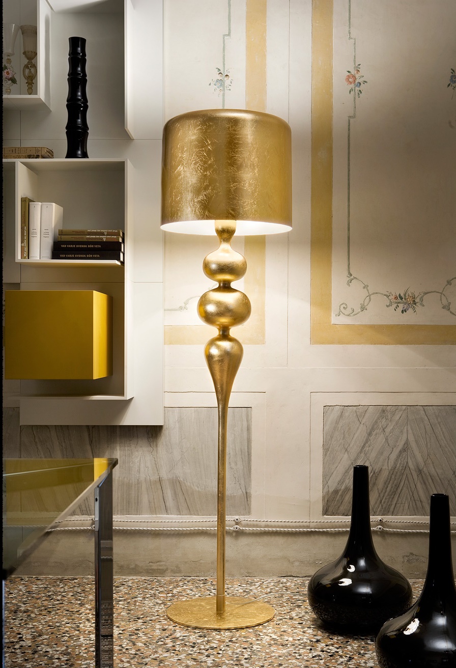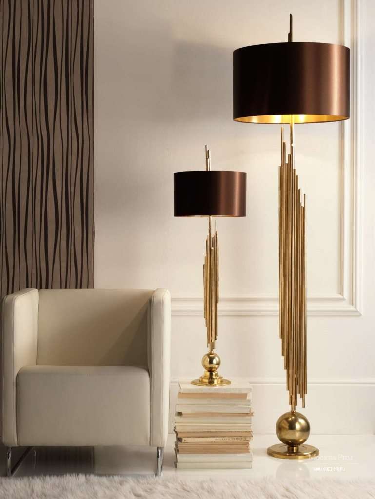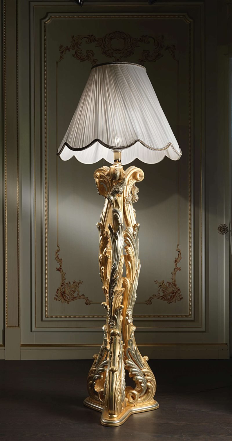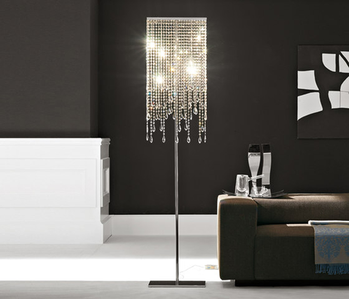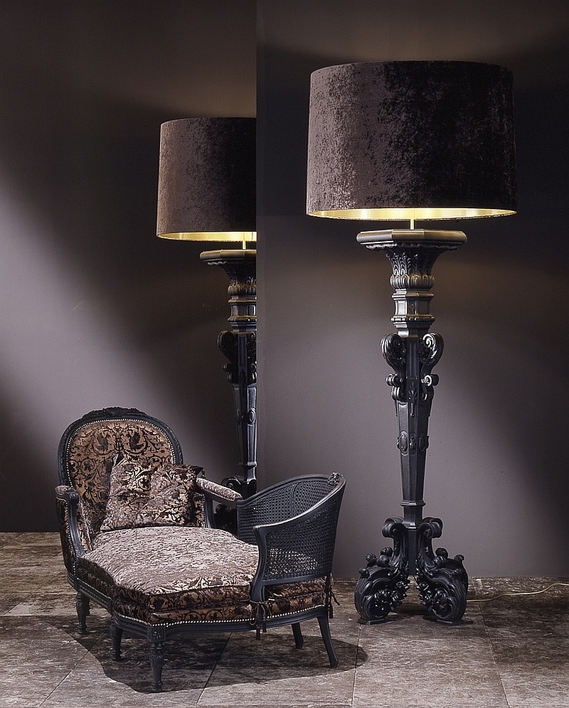 Para glamour ou neo-barroco, seria apropriado usar lâmpadas de assoalho de luxo, que levarão consigo não apenas brilho, mas uma certa misteriosidade, misticismo.