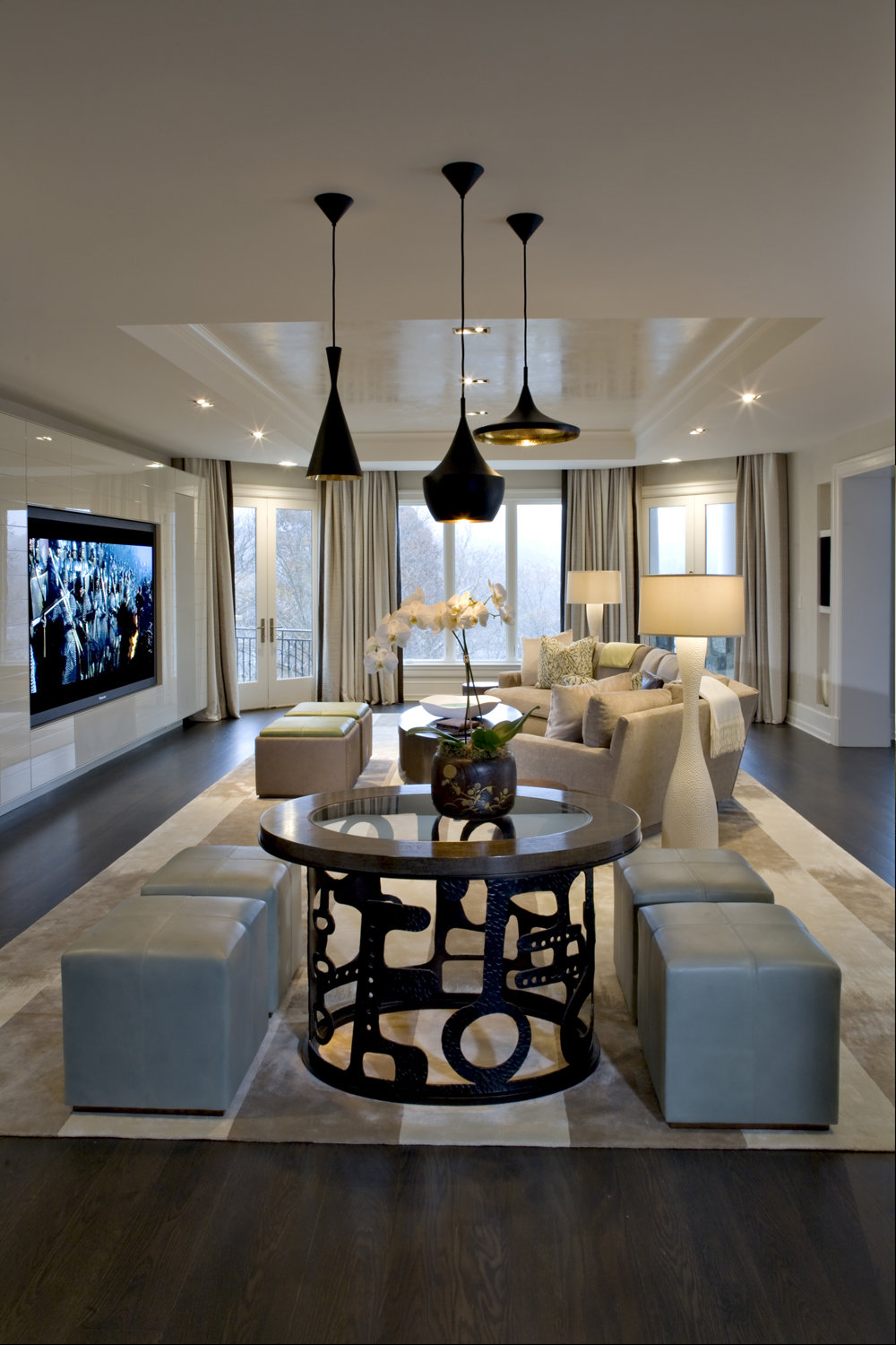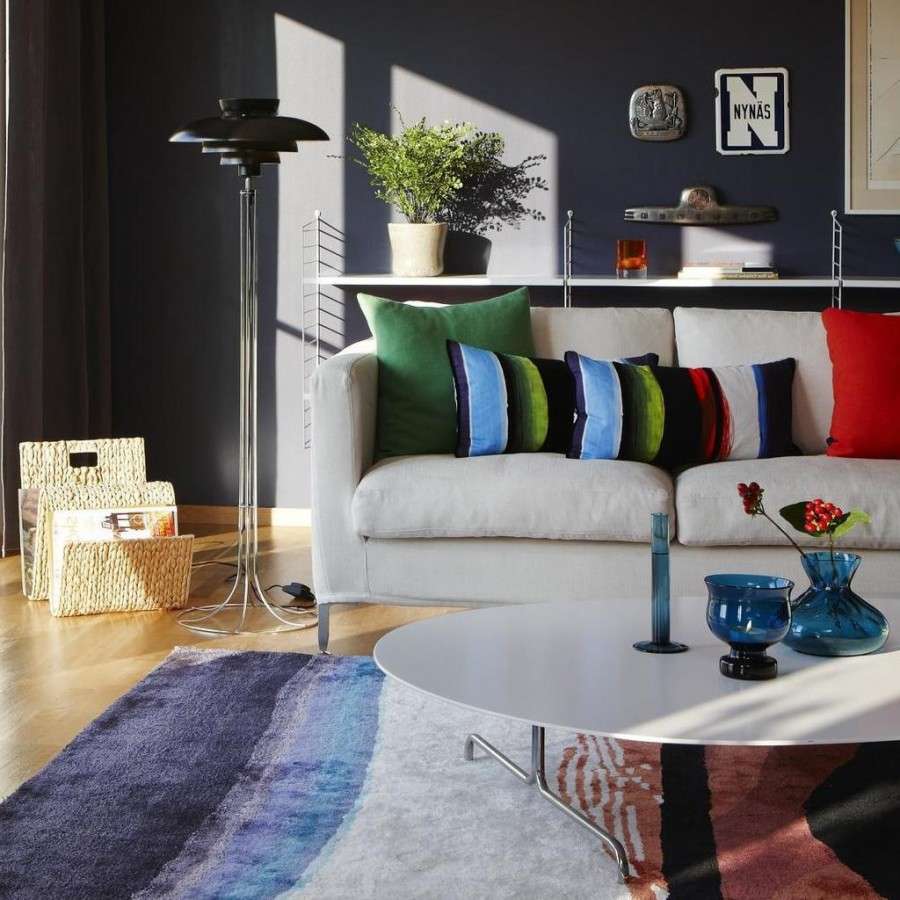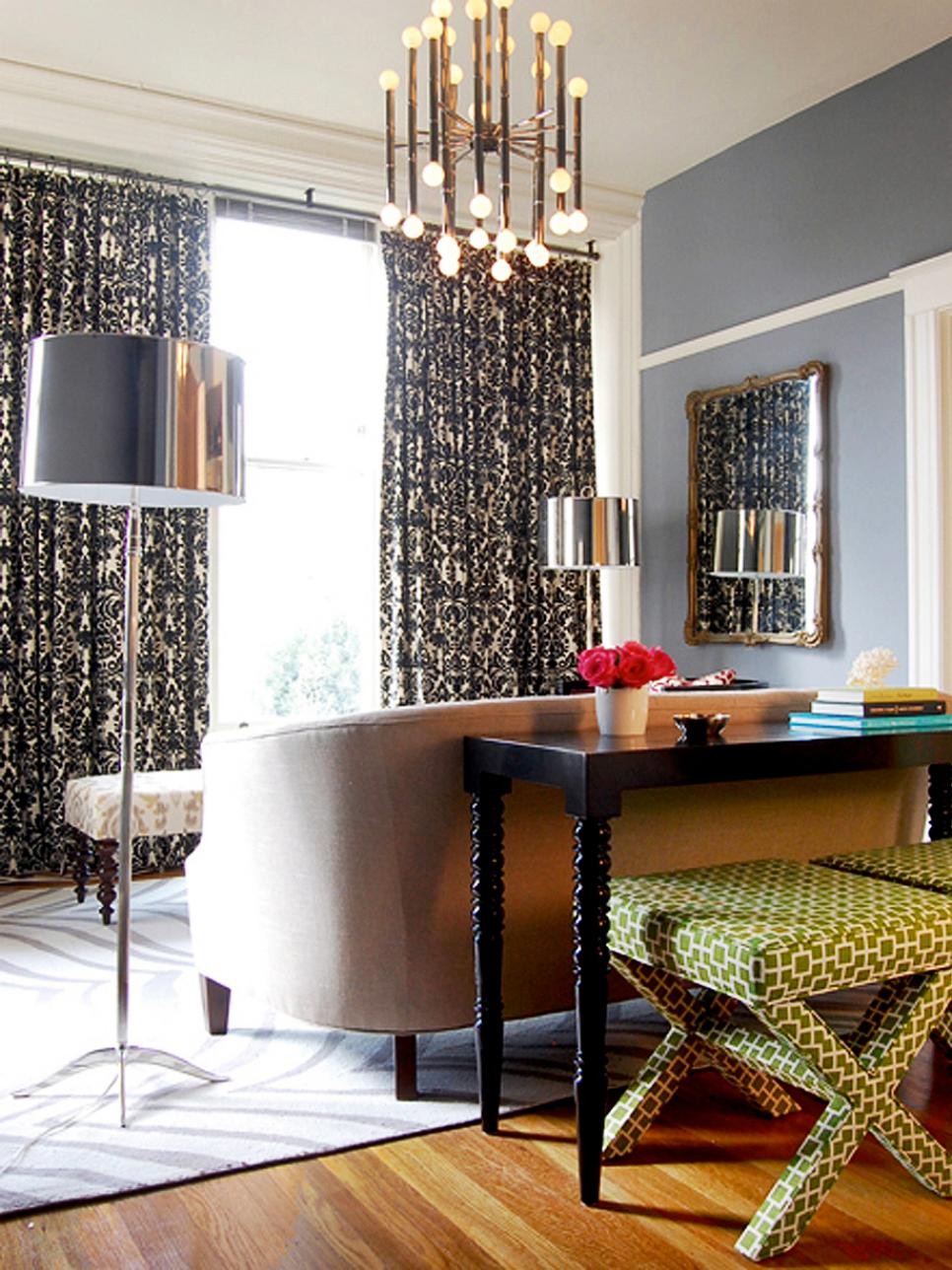 Você pode colocar a luminária na sala de maneira diferente, desde que não interfira na passagem. A lâmpada, portanto, é colocada, se for necessário criar um crepúsculo na sala ou fazer um acento brilhante.