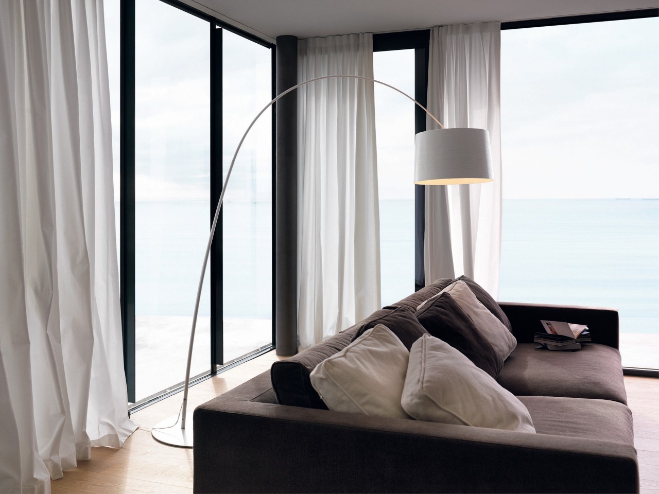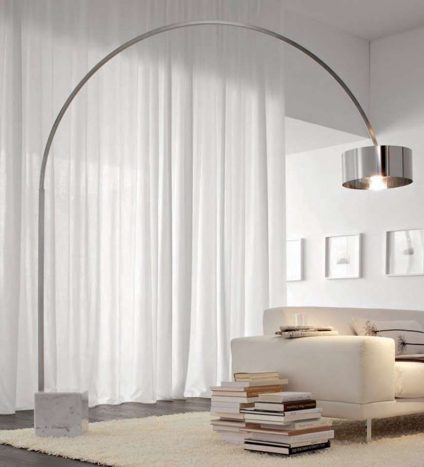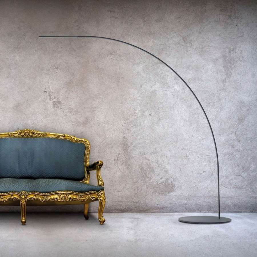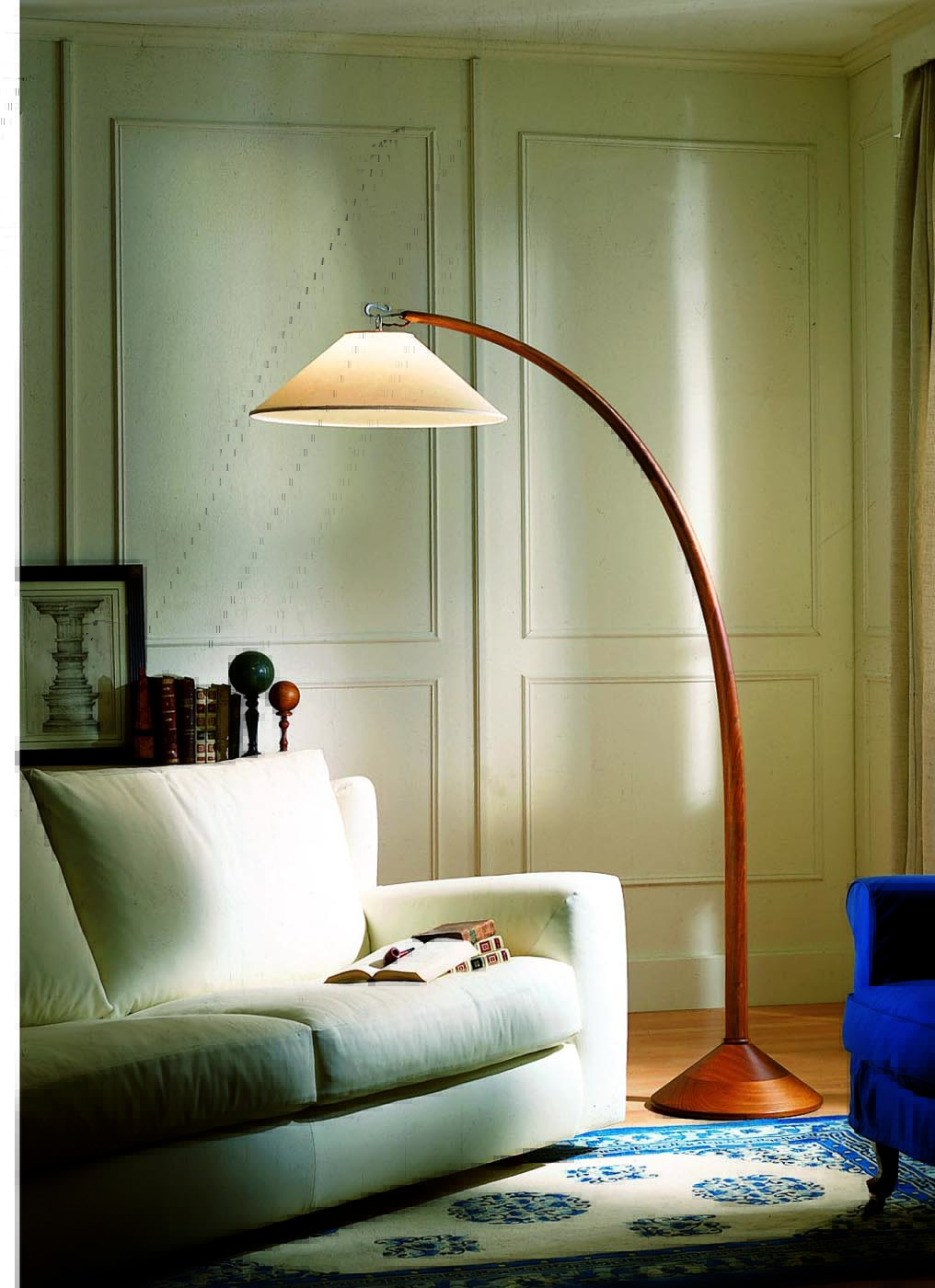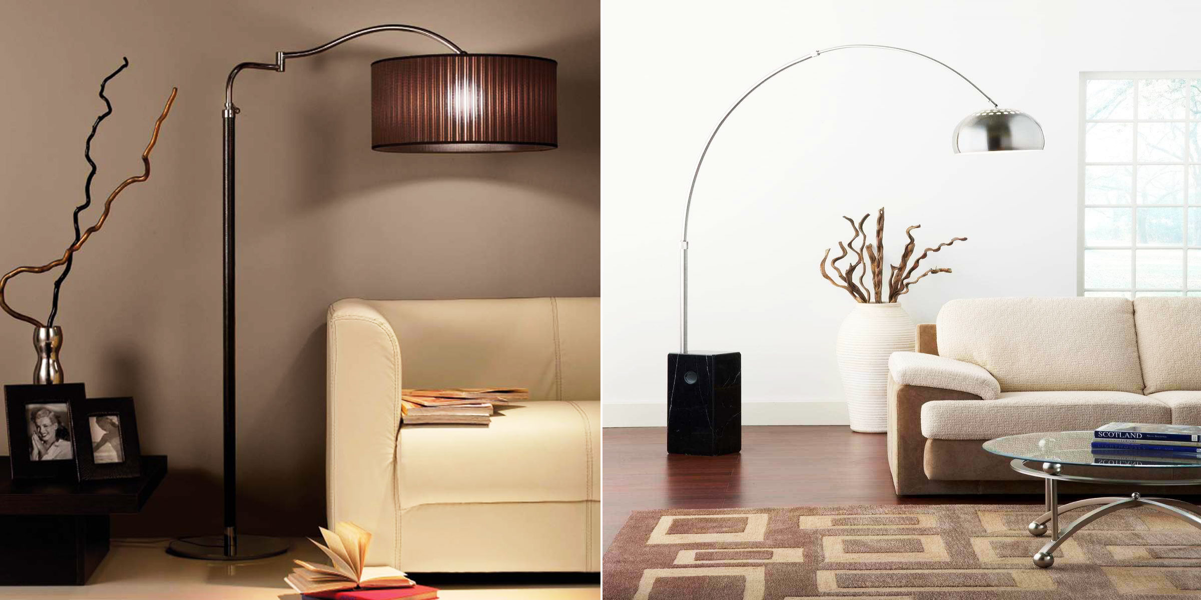 Modelos populares têm uma perna em forma de arco. Lâmpada de assoalho permanece de forma constante devido à base pesada.