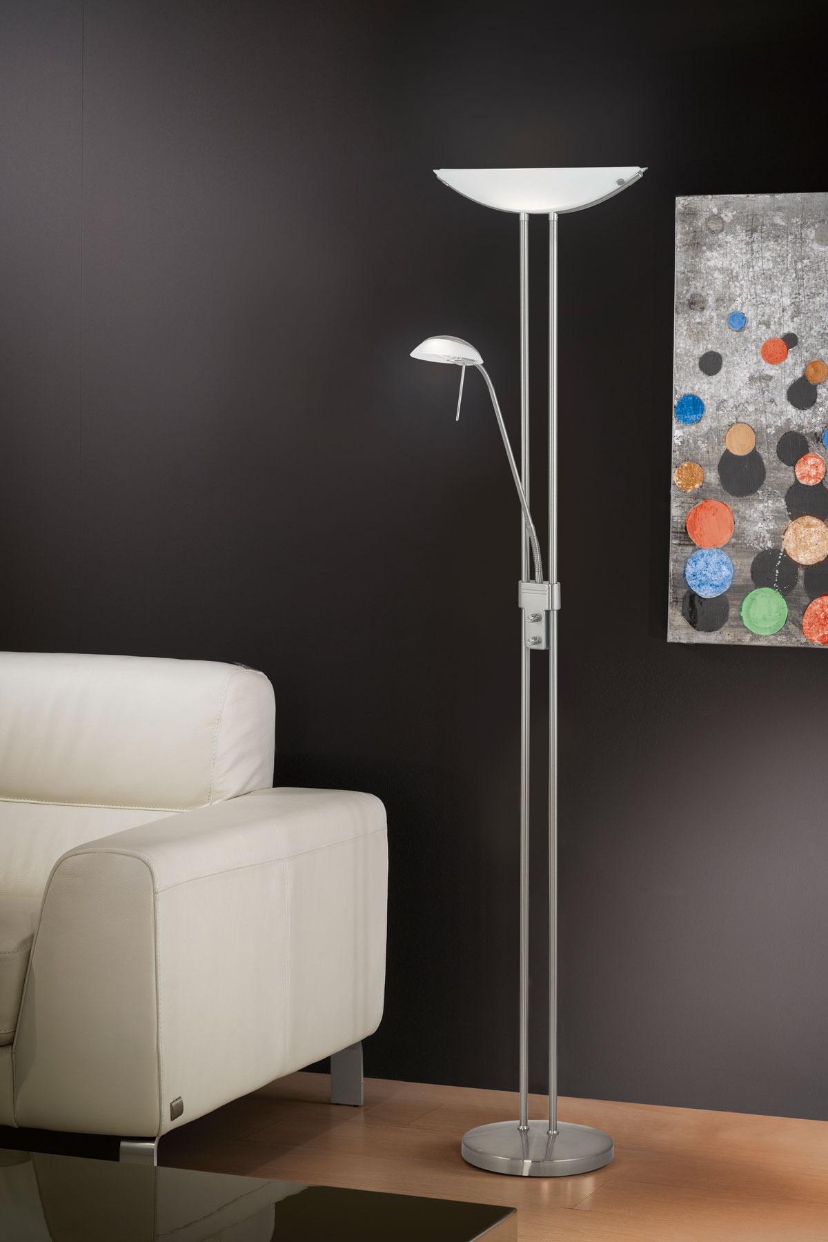 Na moda estão as lâmpadas na forma de um grande candeeiro de mesa. Ela tem um tripé fixo e um grande abajur. Eles podem ser colocados na sala de estar, escritório. By the way, existem luzes especiais para leitura com uma função local, tais lâmpadas de assoalho direcionar a luz em uma direção estrita.