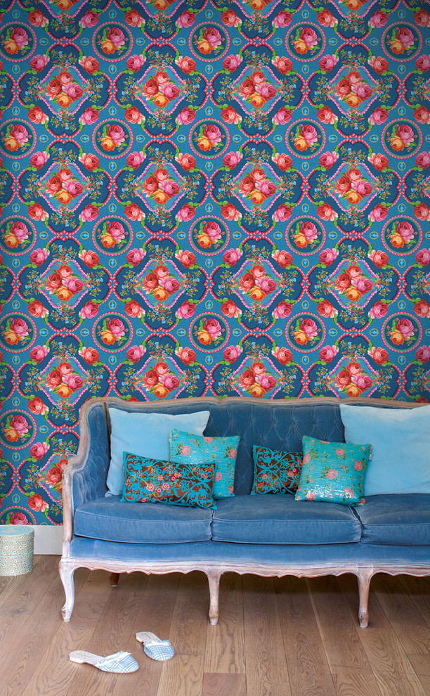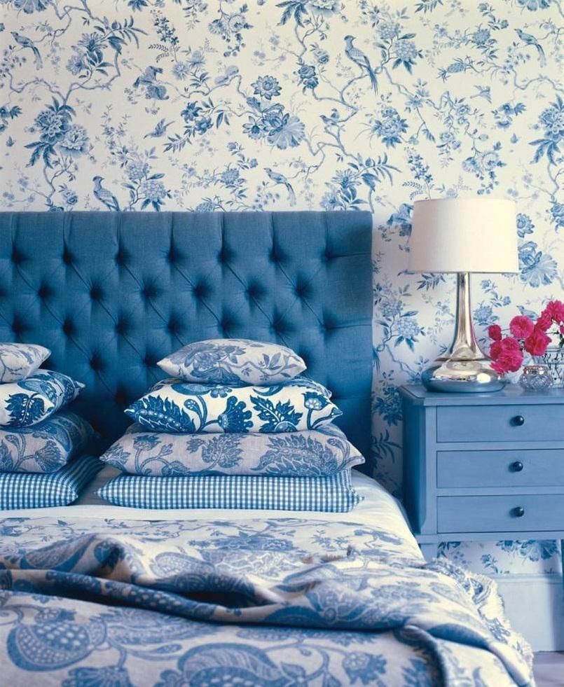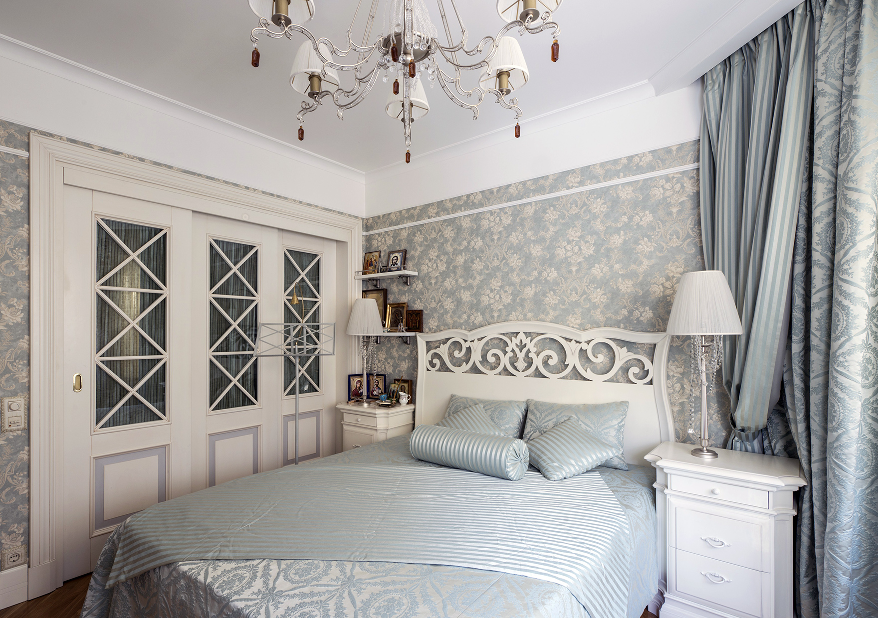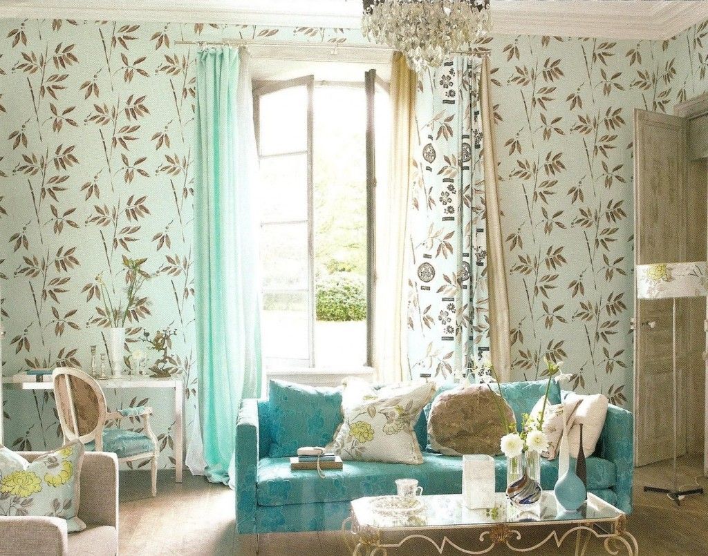 Azul está frio. Deve ser diluído. Caso contrário, papéis de parede azuis causarão angústia e depressão. Para pequenos quartos tal é proibido.
