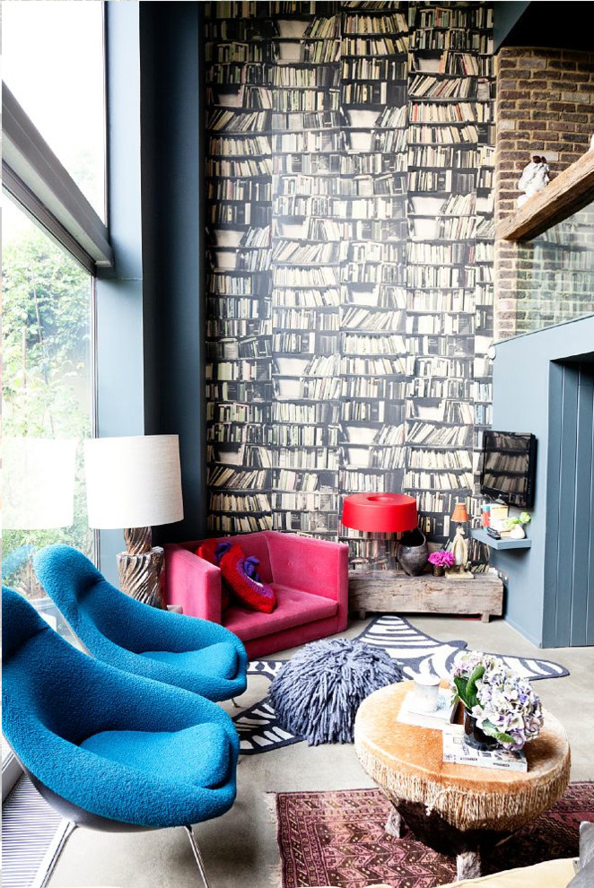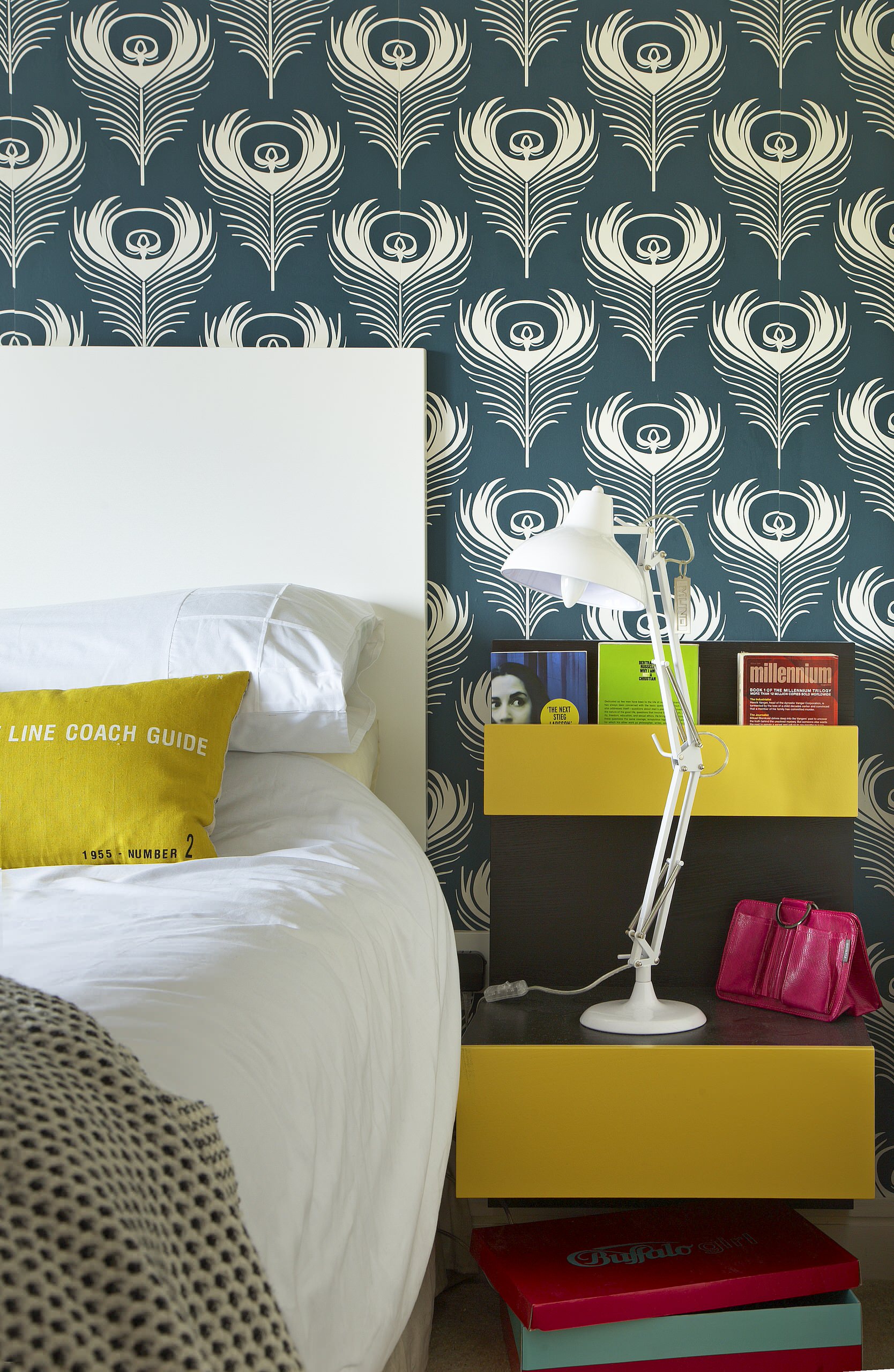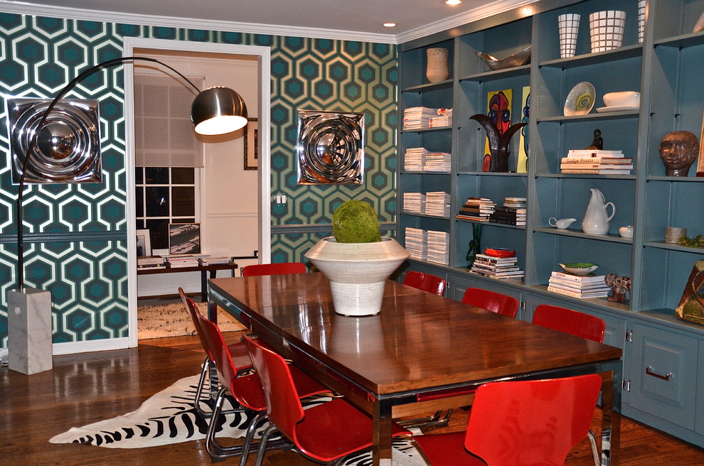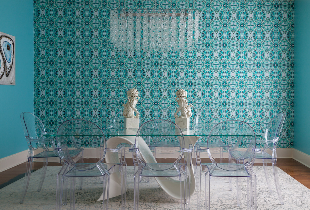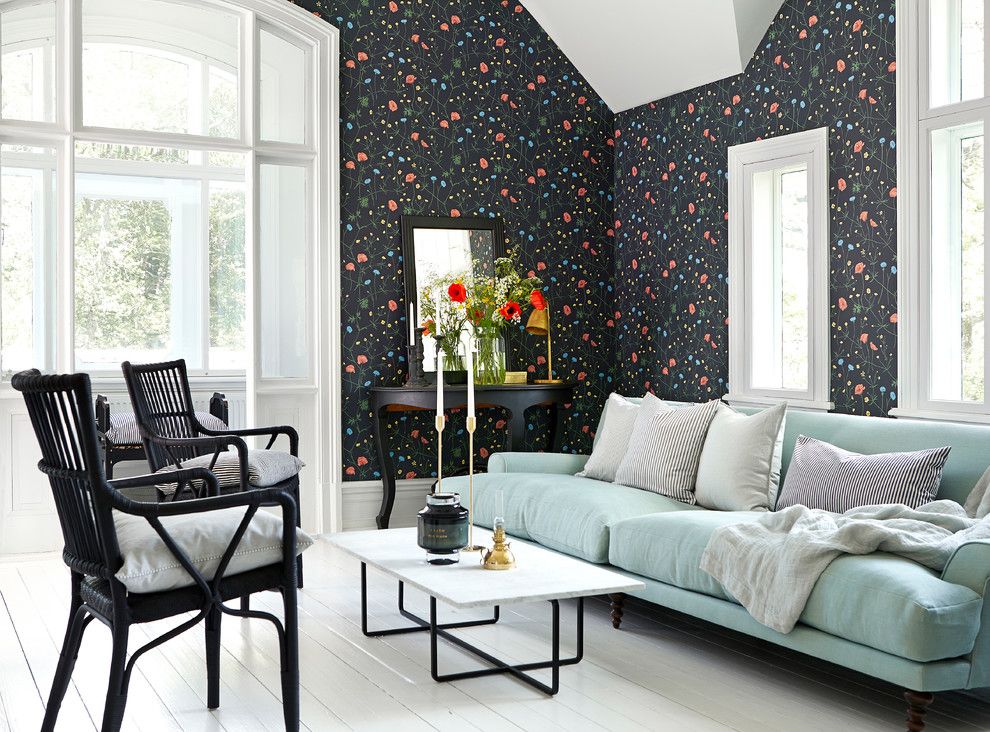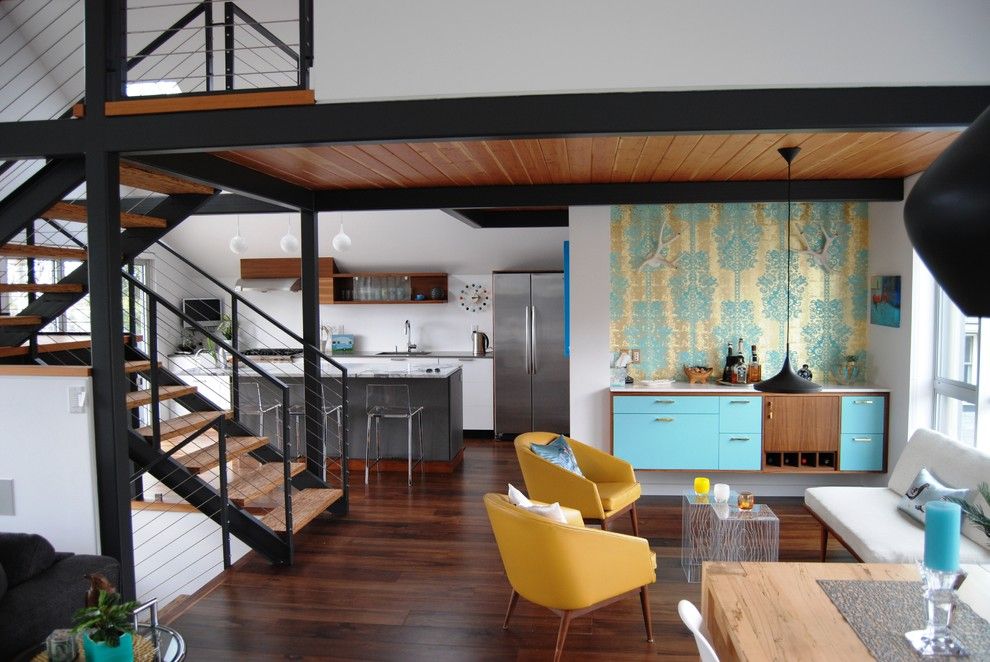 voltar ao menu ↑A combinação de papel de parede e móveis coloridos