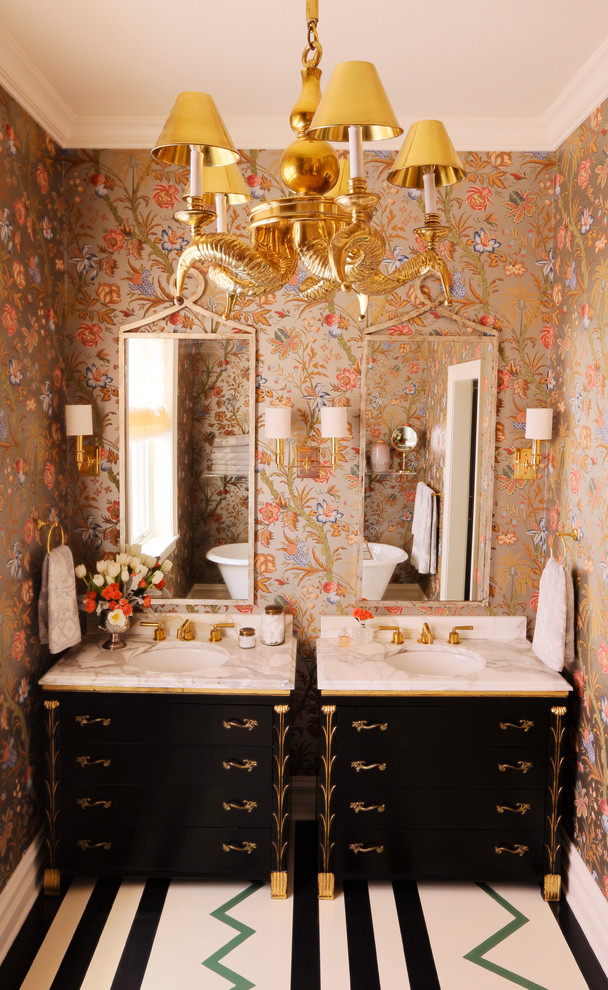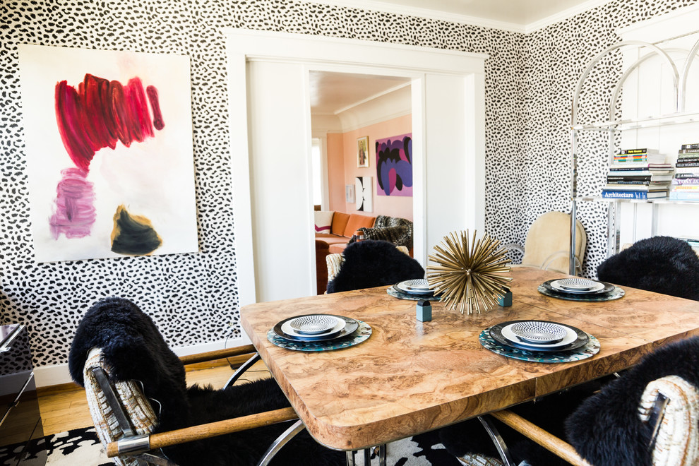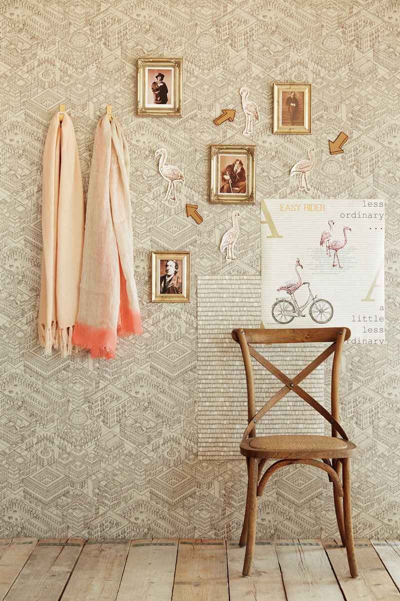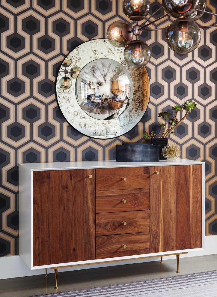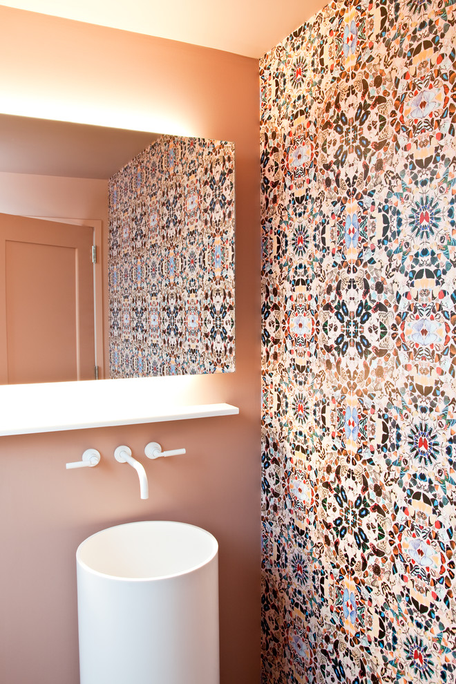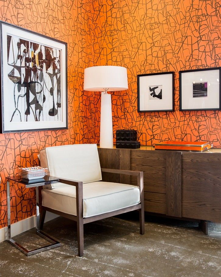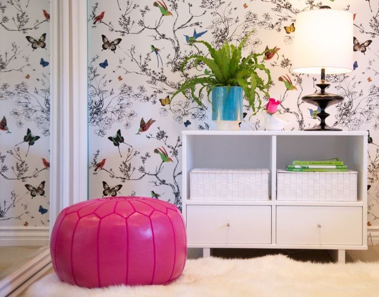 voltar ao menu ↑A combinação de papel de parede e móveis coloridos