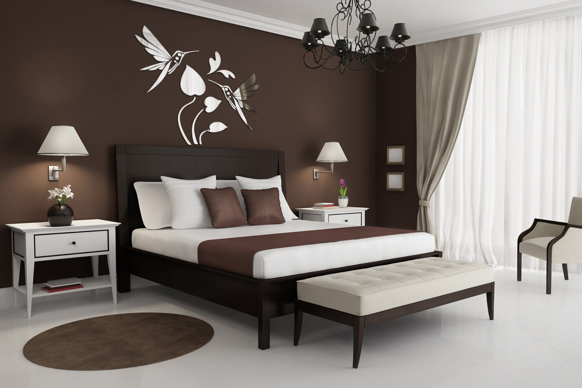 A situação oposta com o quarto.No quarto a maior parte do tempo gasto na hora de dormir, respectivamente, deve ser uma atmosfera calma. Você não pode usar máscaras no quarto, que dão um impulso de energia e suprimem a preguiça. Com tal ambiente não vai funcionar para relaxar. É impossível descartar a questão das dimensões. O material de acabamento desempenha um papel importante na percepção visual do espaço. Existem truques que aumentam o espaço. Existem maneiras de compensar quartos muito espaçosos. Só é importante não confundir as sombras.