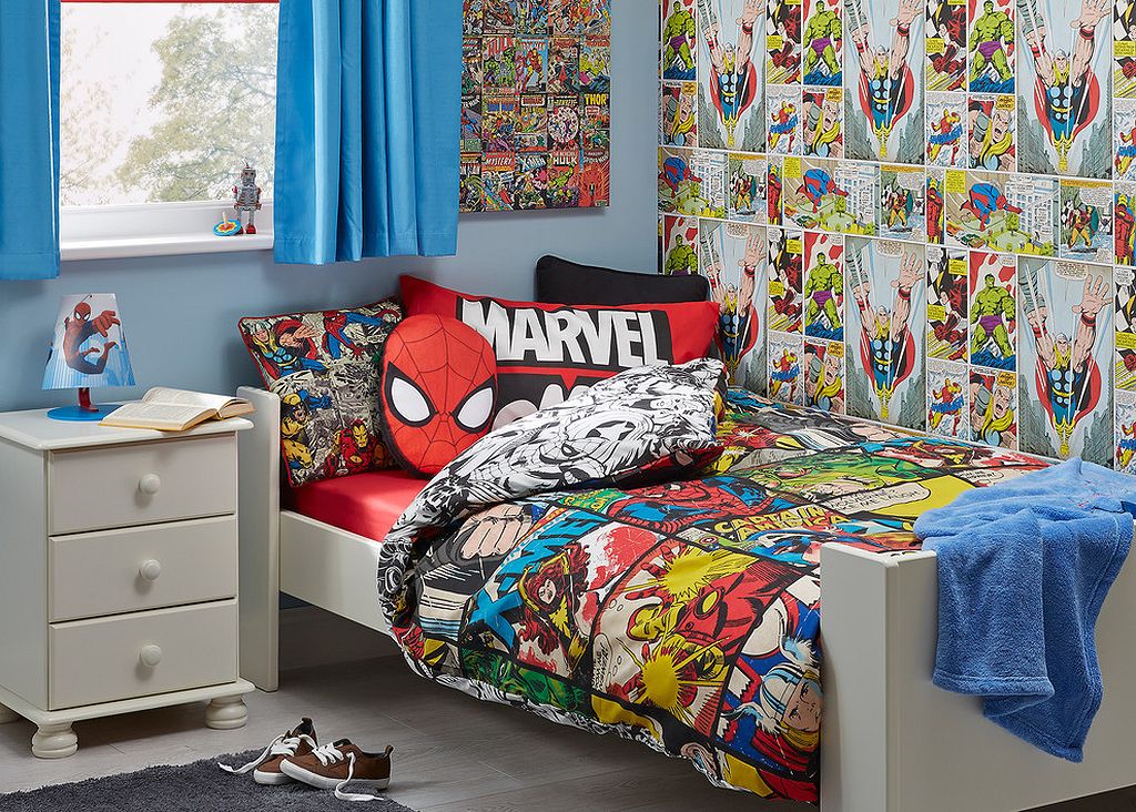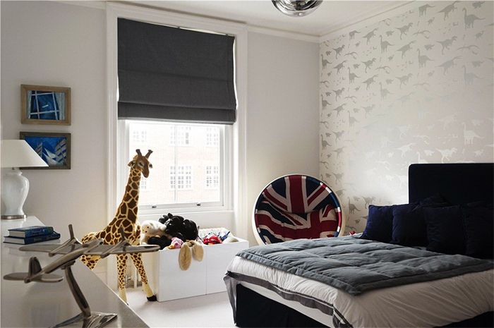 Os meninos têm a situação oposta. Para eles, é melhor fazer um quarto com papel de parede azul ou cinza. A combinação de amarelo e verde, cinza e laranja é bem-vinda. Você pode usar o material de acabamento em vermelho e marrom.