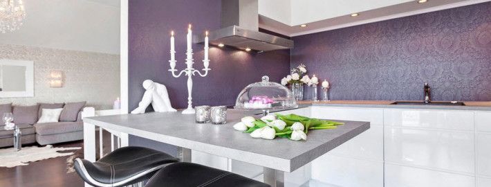 A questão da praticidade não pode ser contornada. Sujeira em tons brancos perceptível fortemente. Para um quarto ou sala de estar não é tão importante. Esse fator é mais importante. para a cozinha. Tetos e as paredes poluem muito mais rápido. A proximidade do fogão, o calor do forno, cozinhar, falta de espaço livre - tudo isso torna as paredes muito vulneráveis.