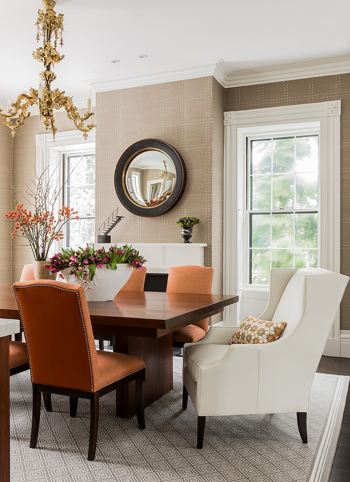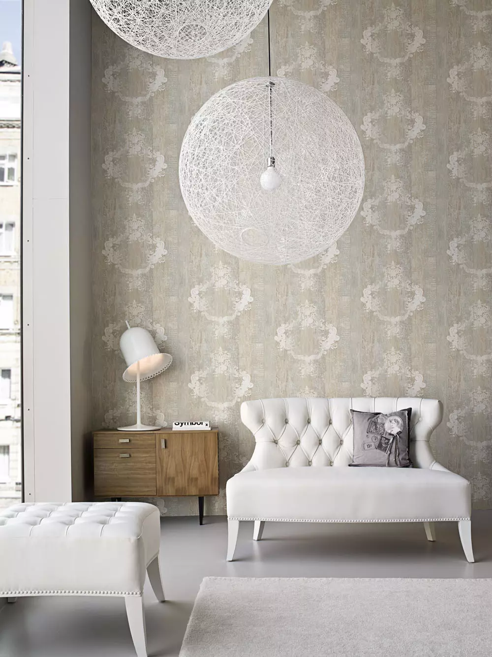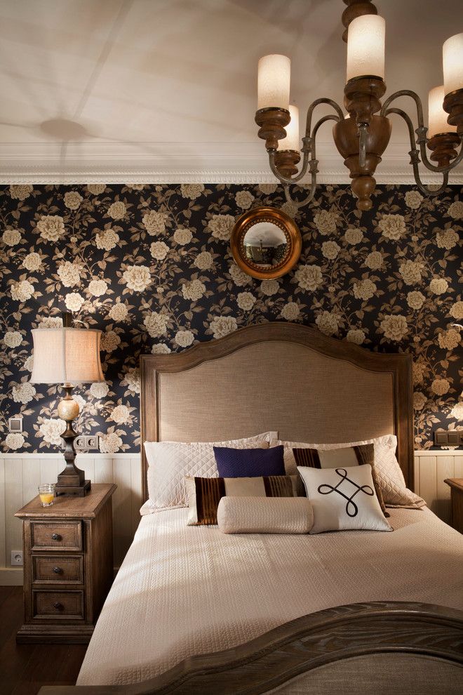 A seleção ocorre após a compra de móveis. Papéis de parede devem ou sombrear móveis, ou enfatizar isso. Aperte demais a atenção que eles não deveriam. Esta sequência é simplesmente explicada. É mais fácil obter novos do que mudar completamente os móveis. Se o contraste da mobília é escuro, então você deve usar a luz. Tons quentes como pêra, mostarda e areia são permitidos.
