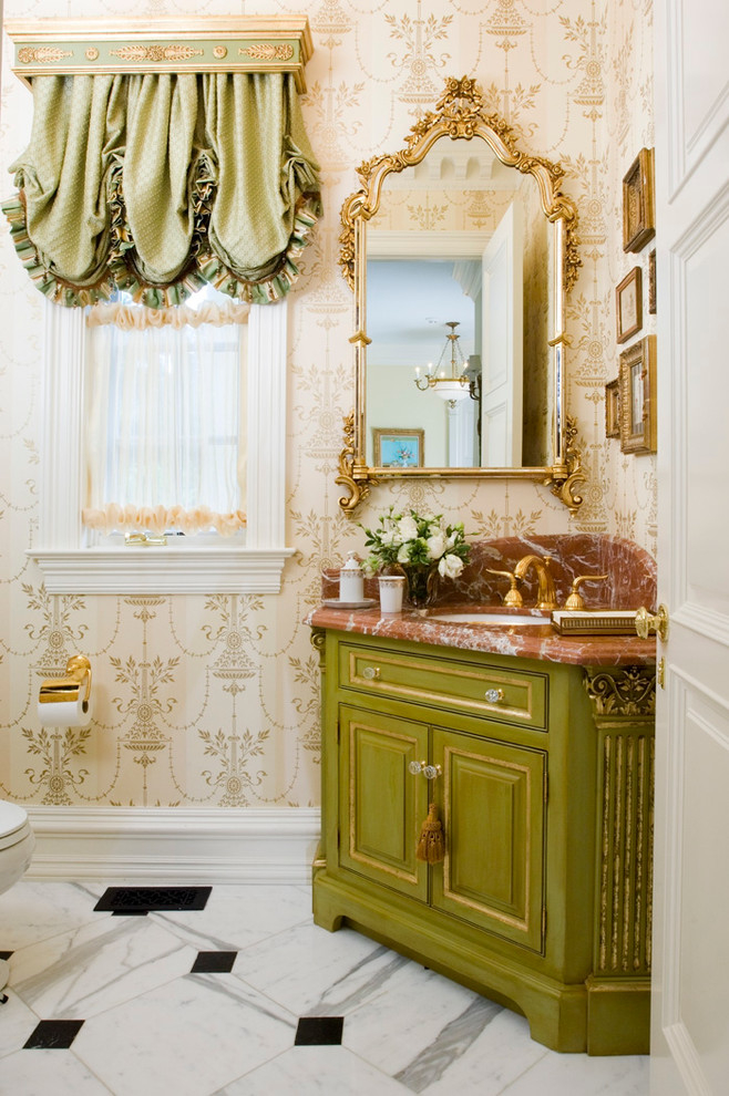 Existe o risco de grandes inserções vermelhas perturbarem a composição. O verde é bem percebido em todos os lugares. Para a cozinha tal sombra é adequada. Tem um efeito positivo no estado mental. Isso pode incluir verde esmeralda e azeitona. Pêra e pistache estão associados à beleza natural.