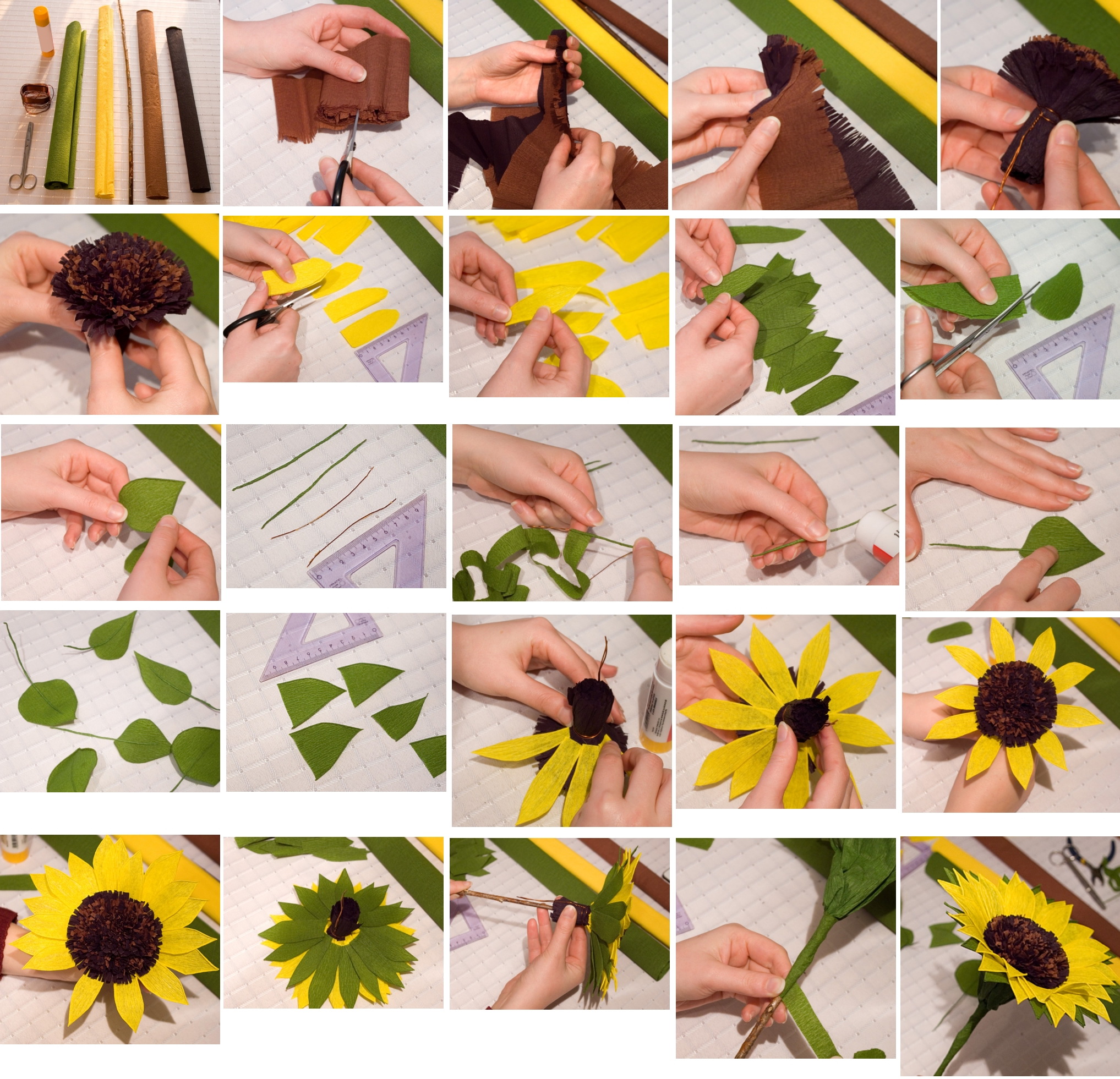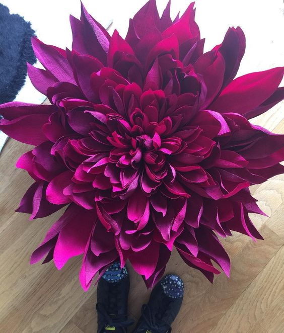 O esquema de sua fabricação praticamente não difere do padrão, exceto pelo fato de que os componentes (pétalas, miolo, caule e folhetos) são cortados em muitos tamanhos grandes.