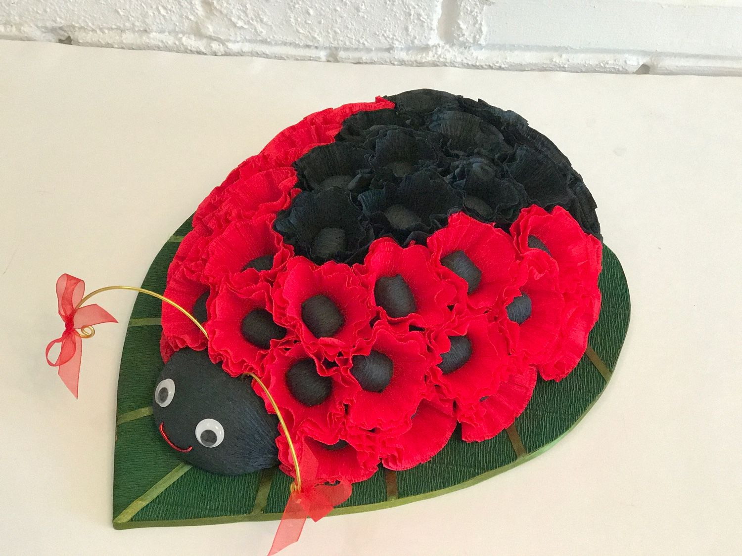 Doces de joaninha. Presente muito relevante para doces dentes e crianças. Tudo que você precisa fazer é formar o layout de uma joaninha.