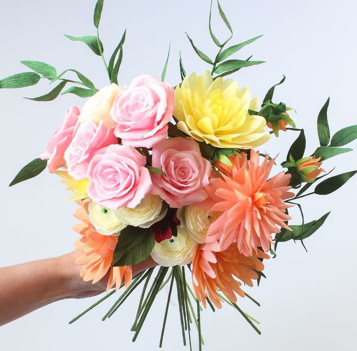Você também pode se limitar a um simples buquê feito de papel feito à mão. Lembre-se, o resultado depende da sua decisão criativa.
