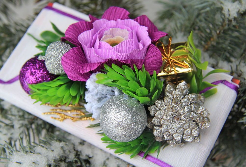 Mas, se você decorar com composições caseiras, você não apenas enfatizará a singularidade, mas também focalizará sua atenção no talento do doador.Este presente será único e único, porque você mesmo fez isso.