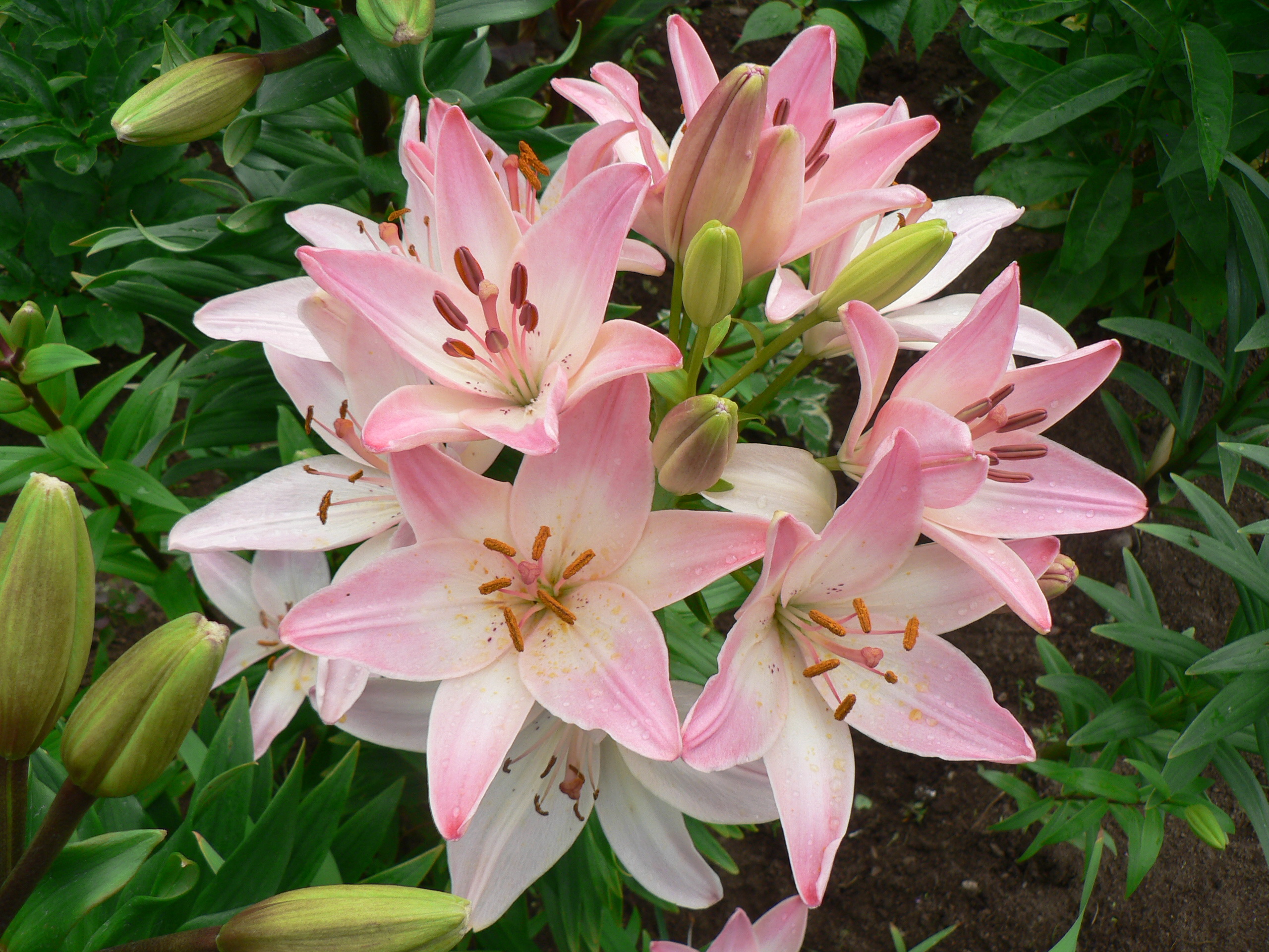 Por via de regra, os lírios plantam-se em grandes grupos. À primeira vista, você pode colocar lírios asiáticos de tamanho inferior, que florescem primeiro. O segundo nível é alto variedades de lírios. Entre estes dois níveis, você deve deixar o espaço, plantar outras variedades de subdimensionado (mas eles devem ser maiores do que o primeiro nível de lírios). Phlox, freesia, lobelia serve. Atrás de lírios altos você pode plantar peônias ou hortênsias.