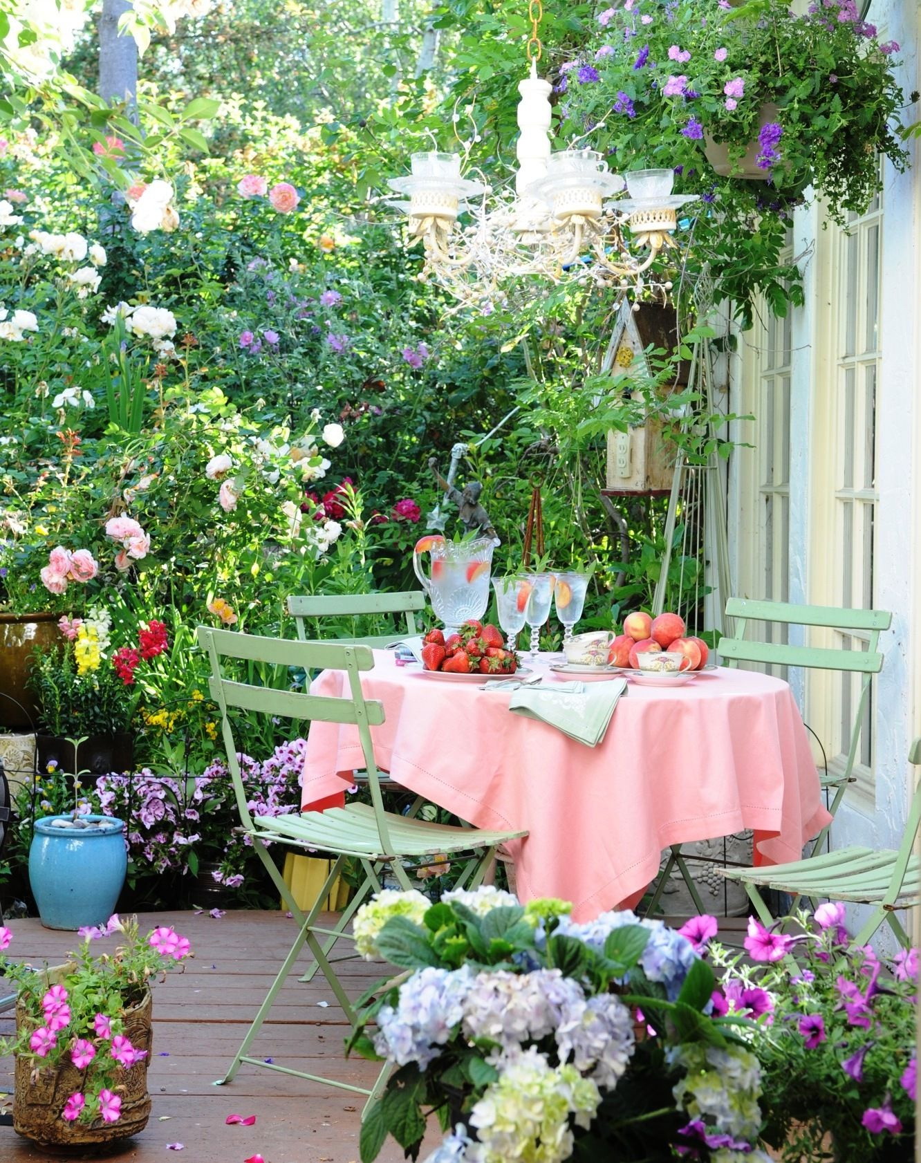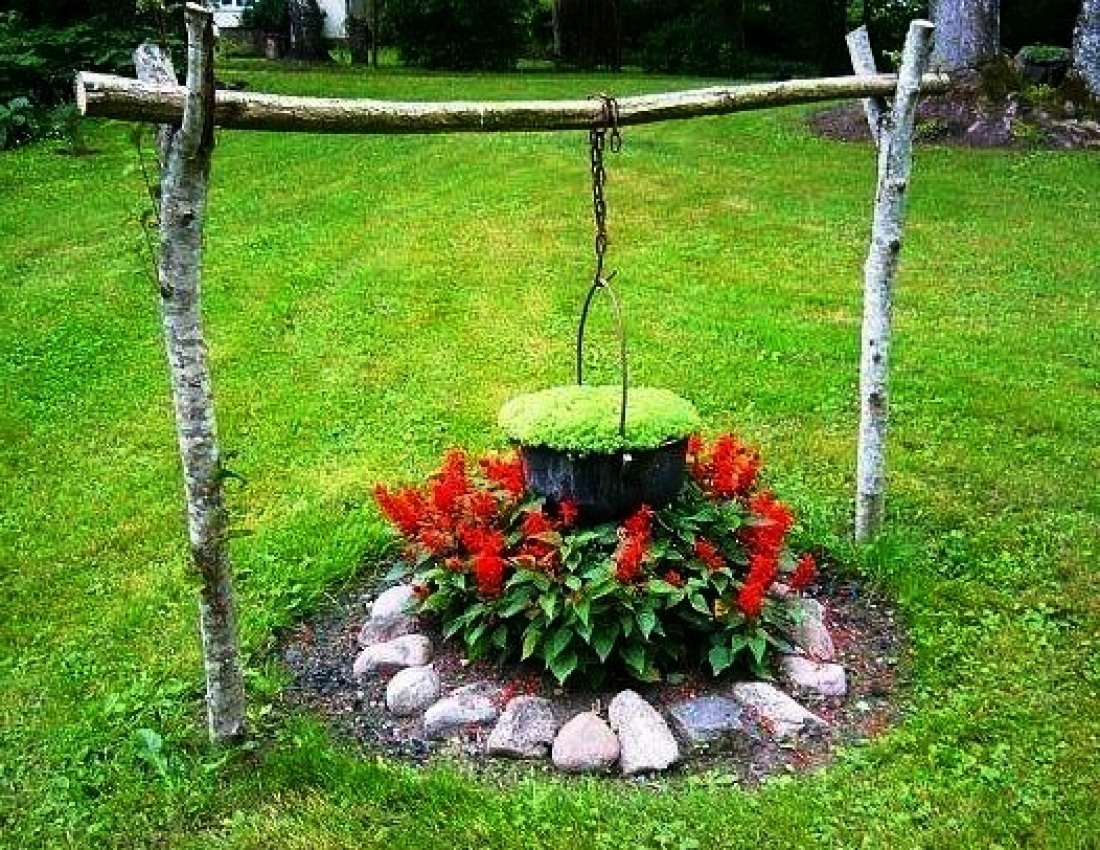 A principal vantagem de pendurar potes - eles podem ser movidos para outro lugar a qualquer momento, revitalizando assim o seu jardim.