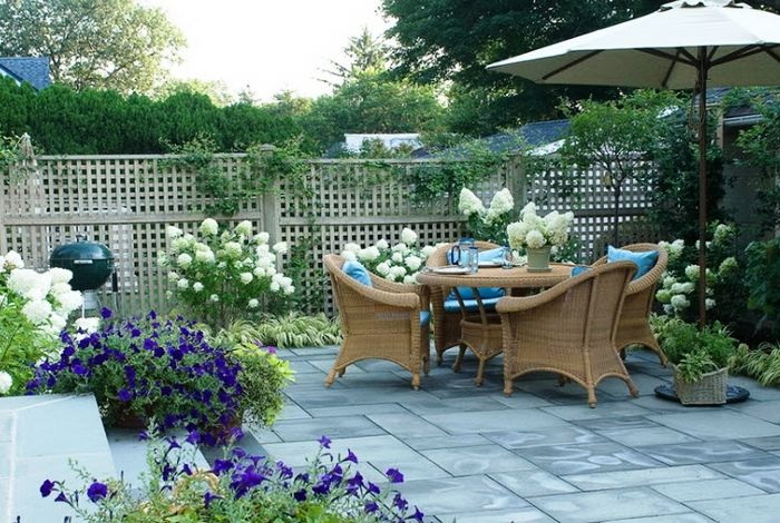 - É necessário abandonar as sebes altas, completamente entrelaçadas com flores de escalada. Se o local estiver completamente vedado, plante um grande número de flores ao redor da cerca, será mais como uma gaiola do que um lugar para descansar.