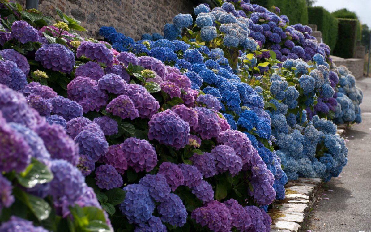A hortênsia é perfeita para o registro de reservatórios artificiais na casa de campo de verão.