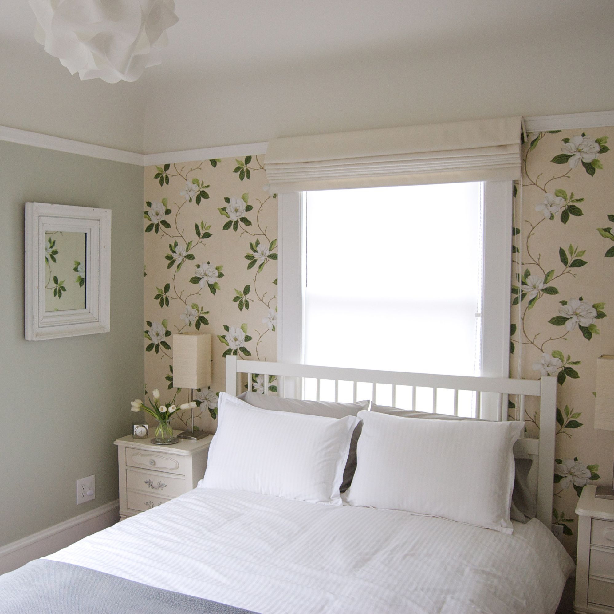 Para quartos femininos e femininos, um ambiente romântico provençal com uma abundância de pequenas flores em cores delicadas pode ser adequado. Tal escolha deve ser complementada pela estilização de toda a sala, incluindo necessariamente móveis de madeira, tecidos envelhecidos, leves, leves e a simplicidade do interior.