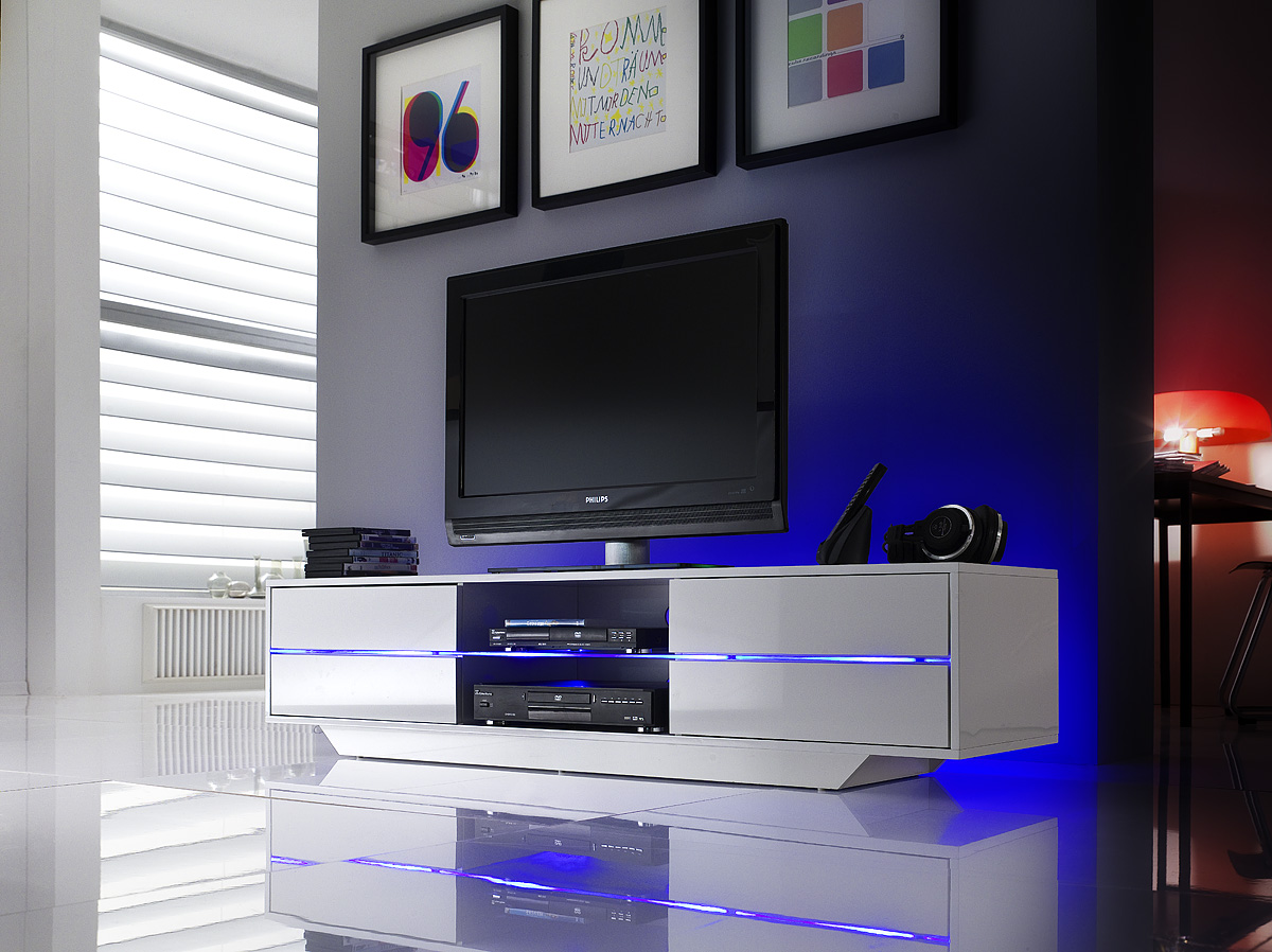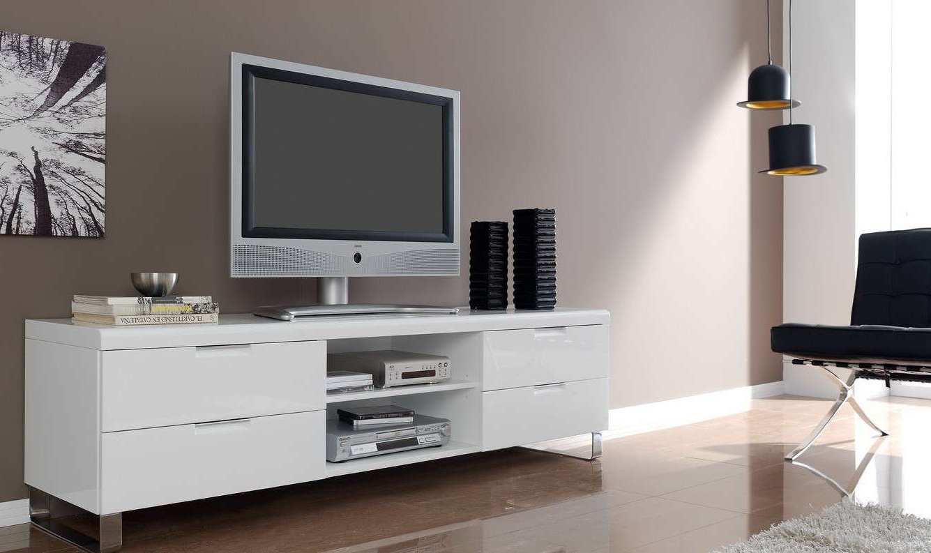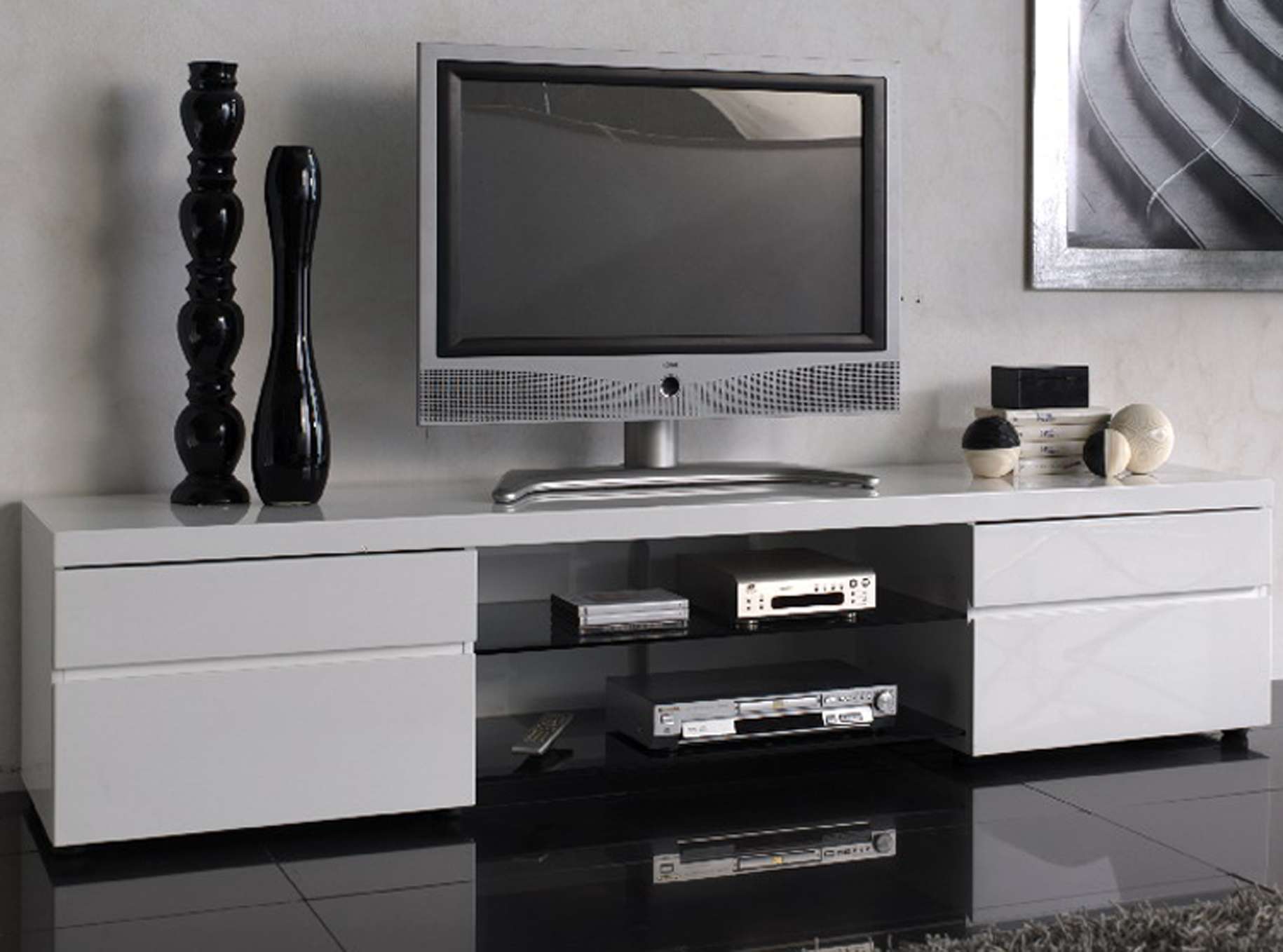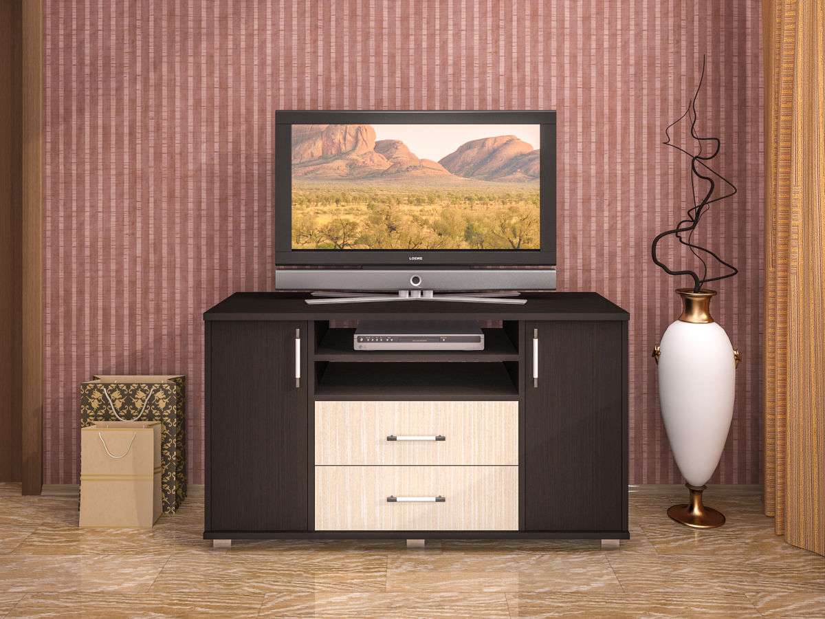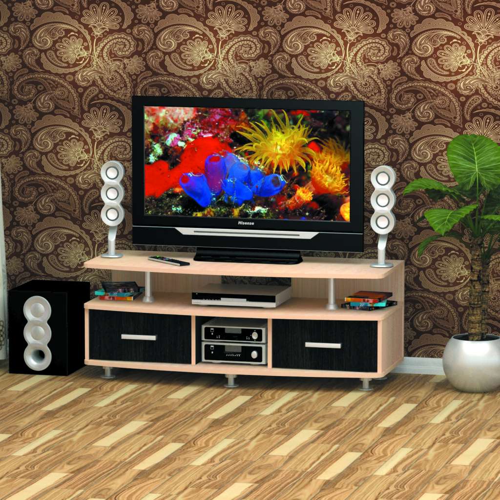 Sob o armário de TV, há um gabinete bastante amplo, caracterizado por uma pequena altura. De ano para ano, as televisões estão se tornando mais finas, além de mudar a aparência e as mesas de cabeceira. Sua instalação traz muitos pontos positivos: