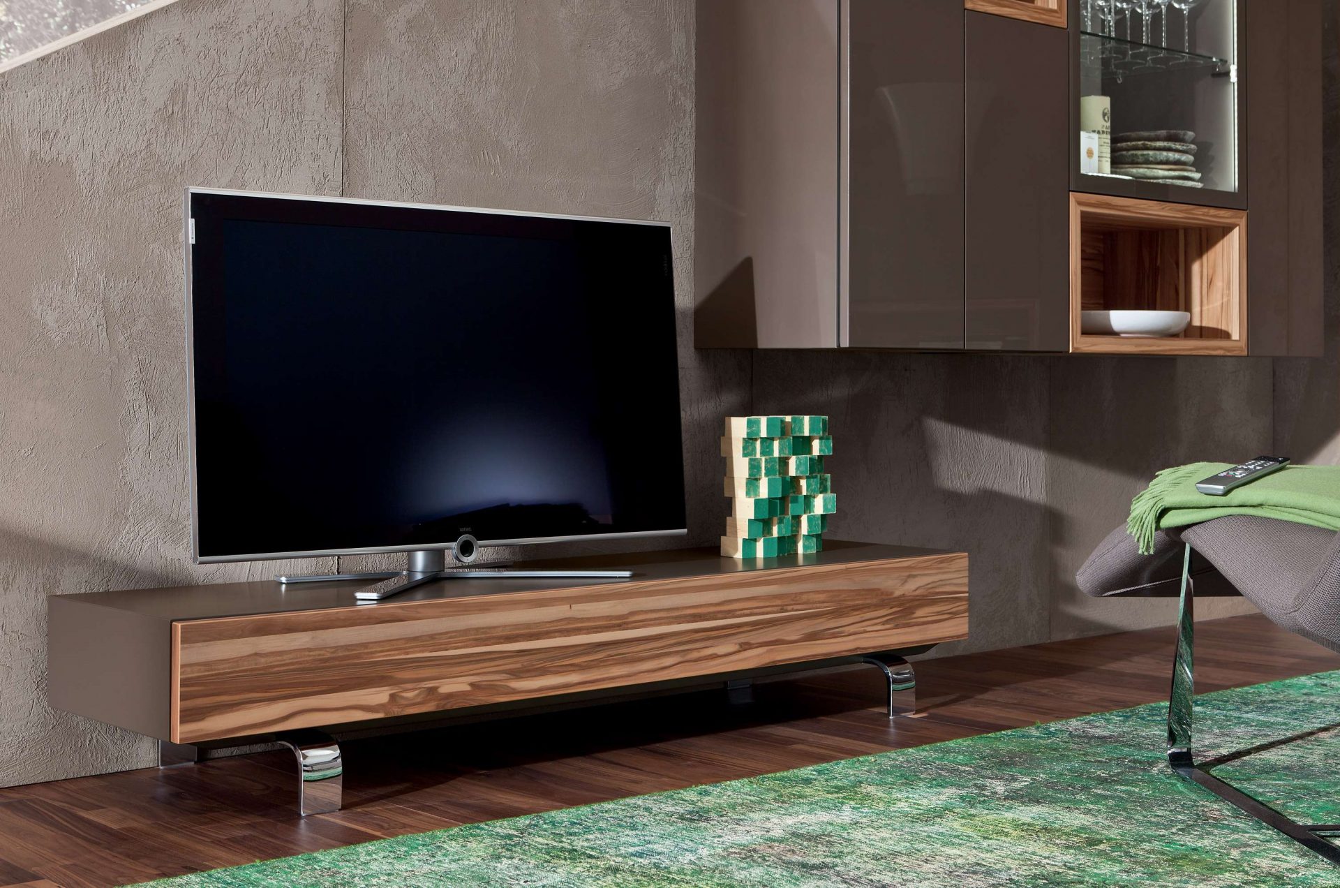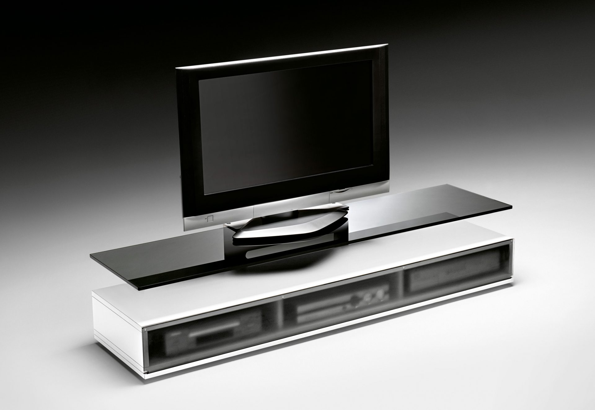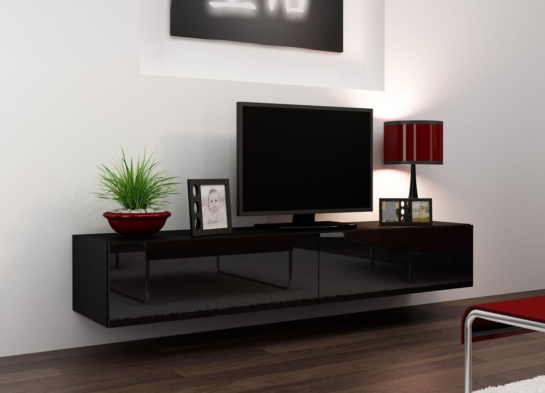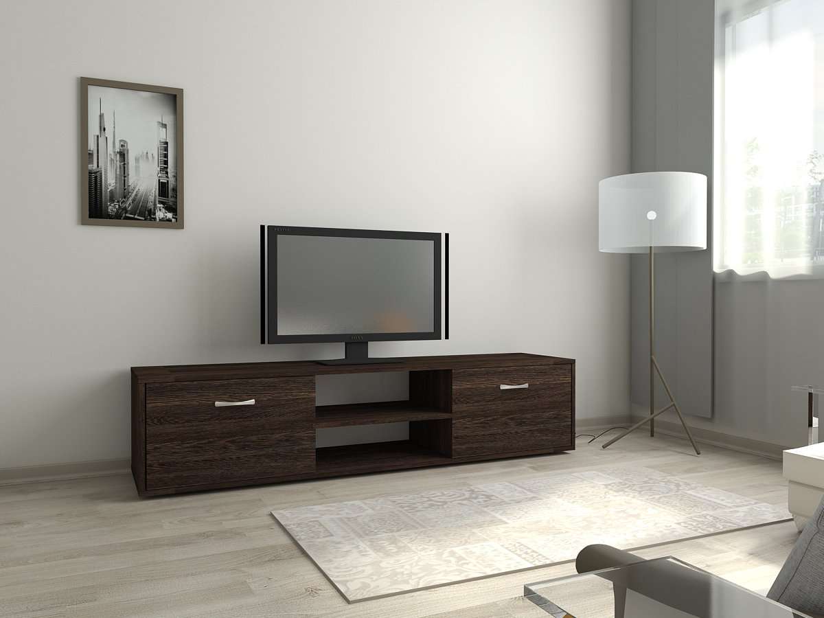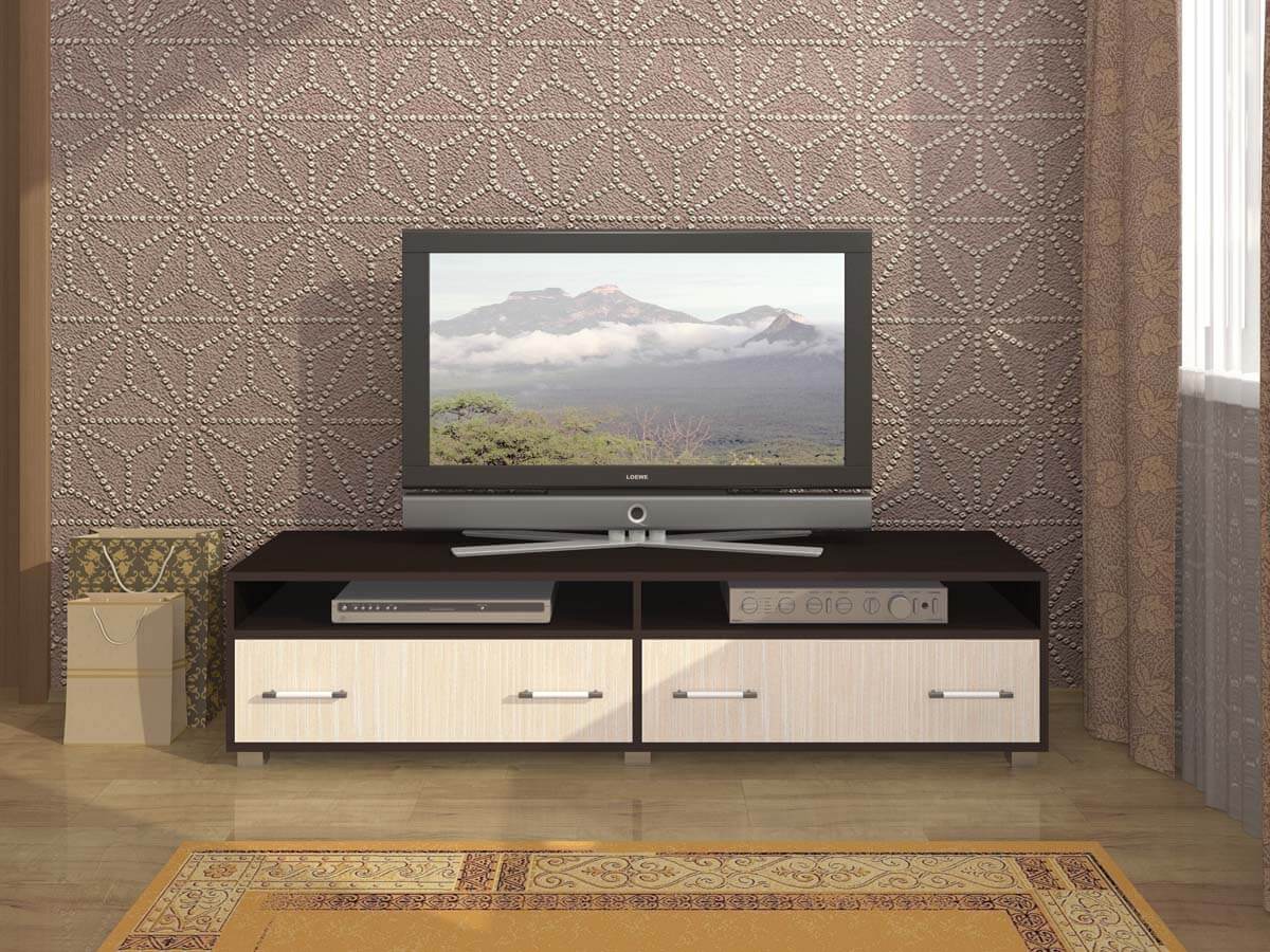 Sob o armário de TV, há um gabinete bastante amplo, caracterizado por uma pequena altura. De ano para ano, as televisões estão se tornando mais finas, além de mudar a aparência e as mesas de cabeceira. Sua instalação traz muitos pontos positivos: