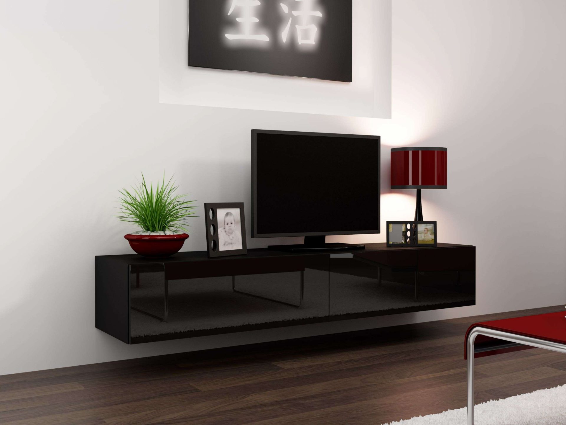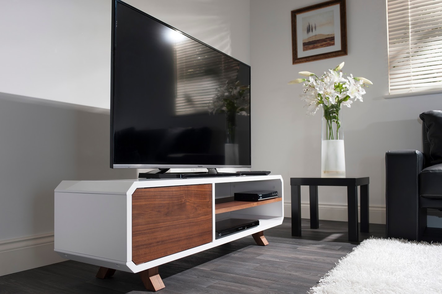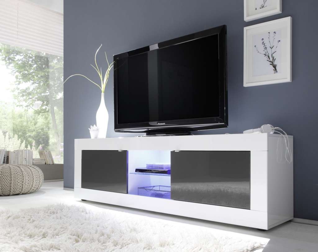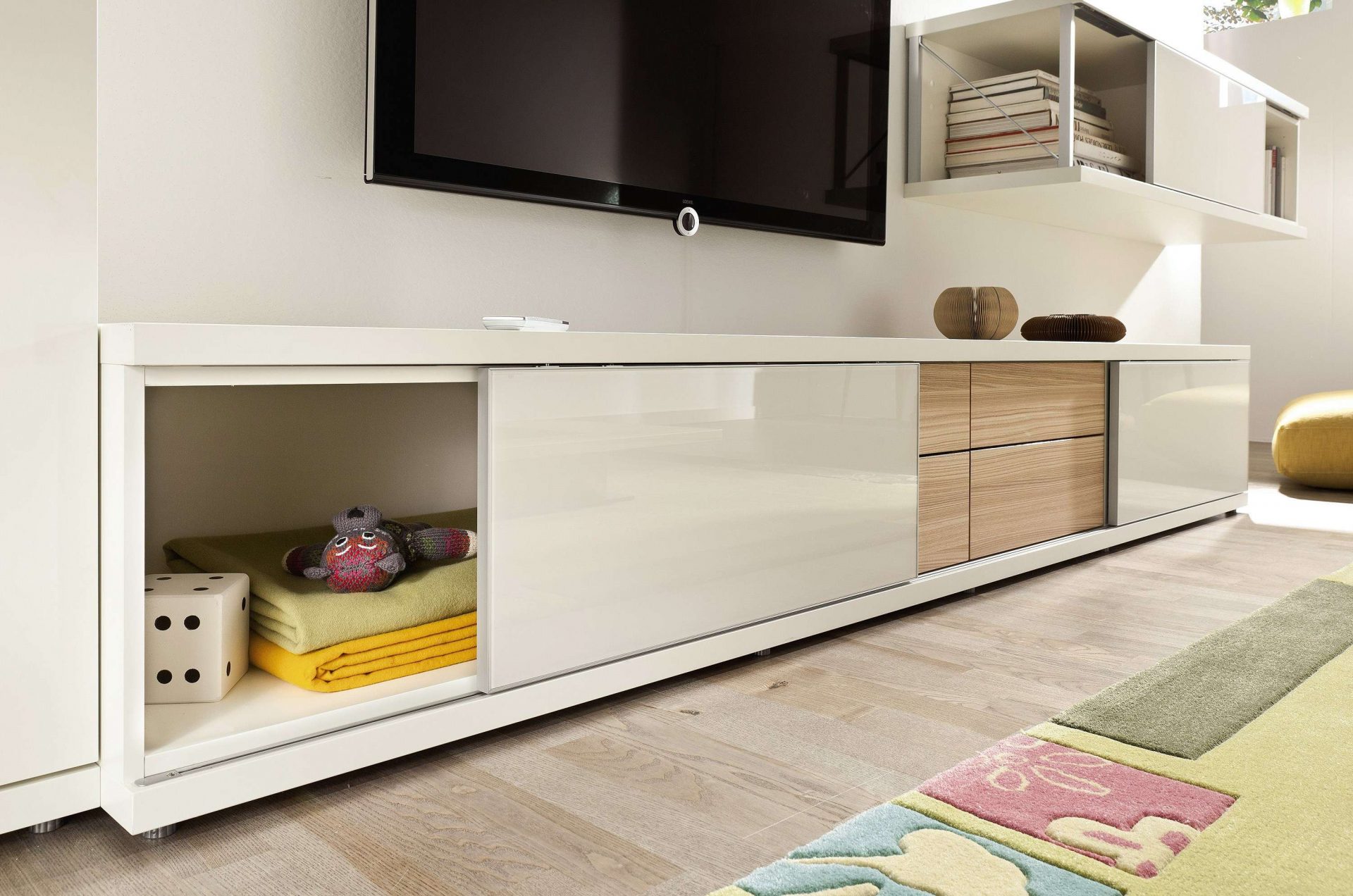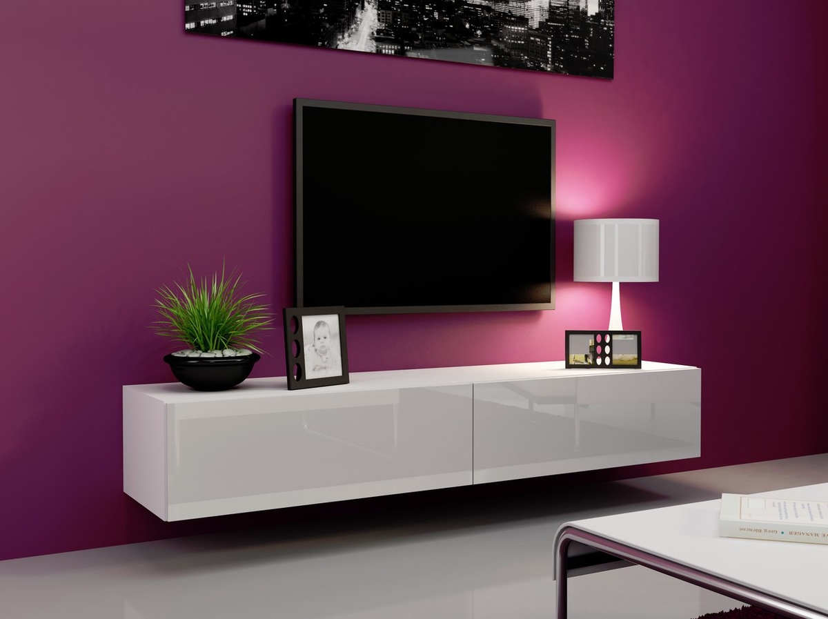 Sob o armário de TV, há um gabinete bastante amplo, caracterizado por uma pequena altura. De ano para ano, as televisões estão se tornando mais finas, além de mudar a aparência e as mesas de cabeceira. Sua instalação traz muitos pontos positivos: