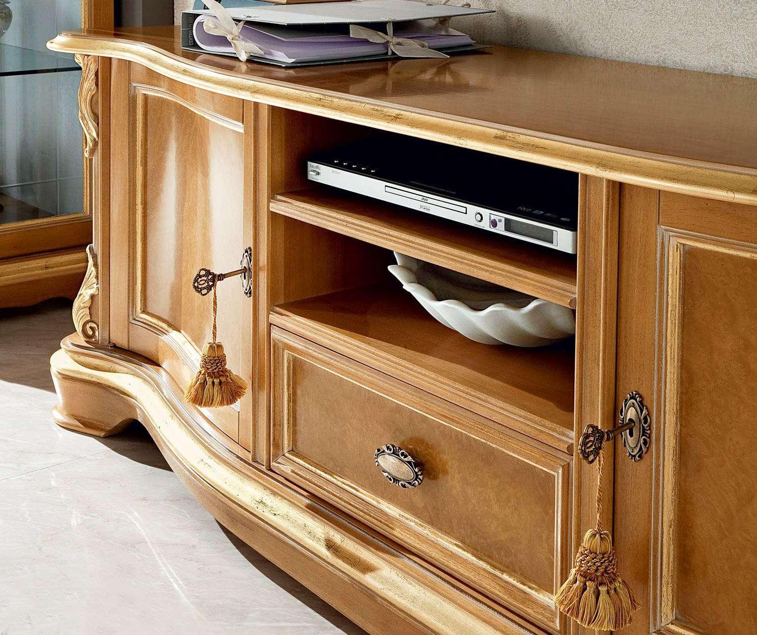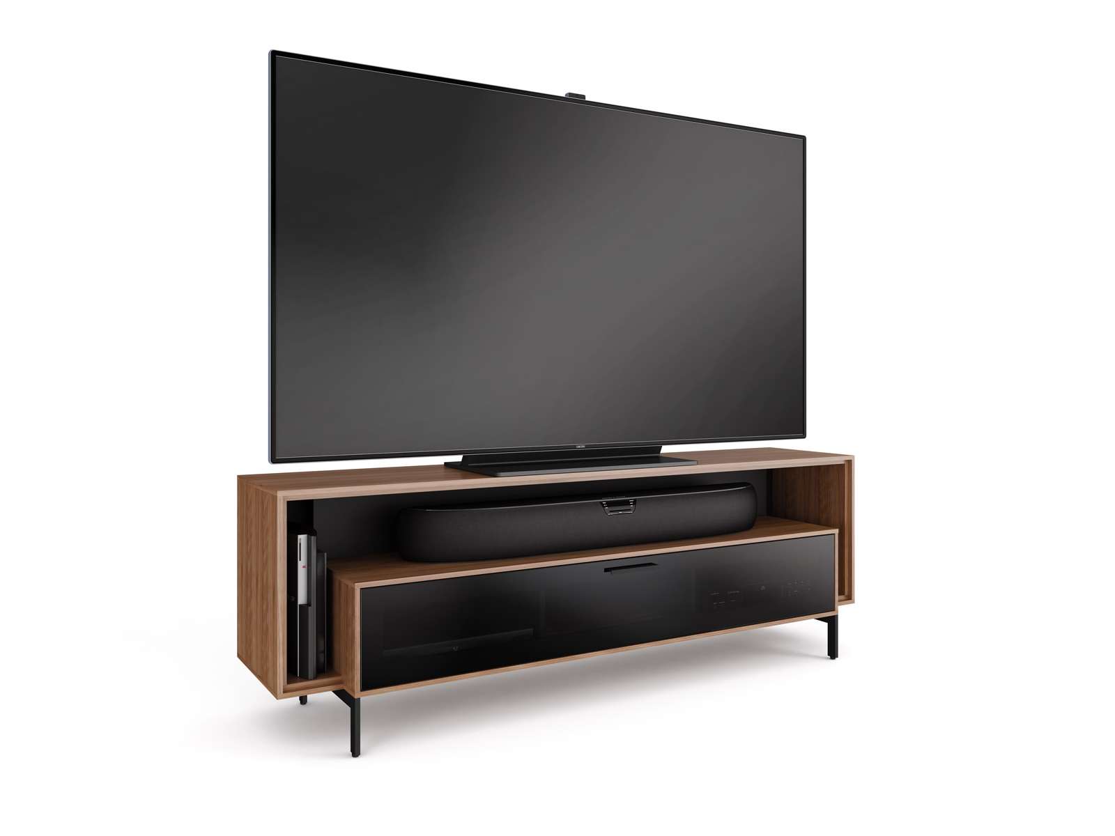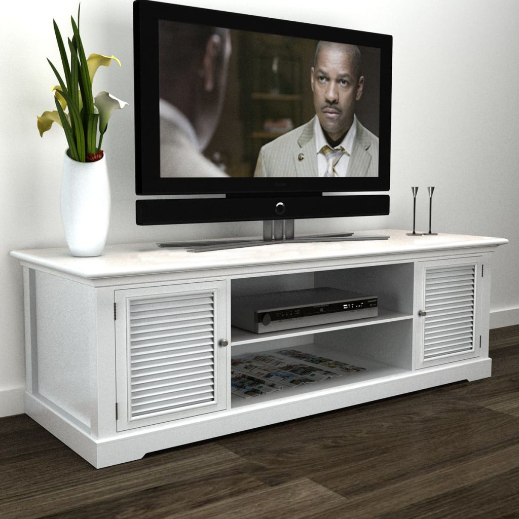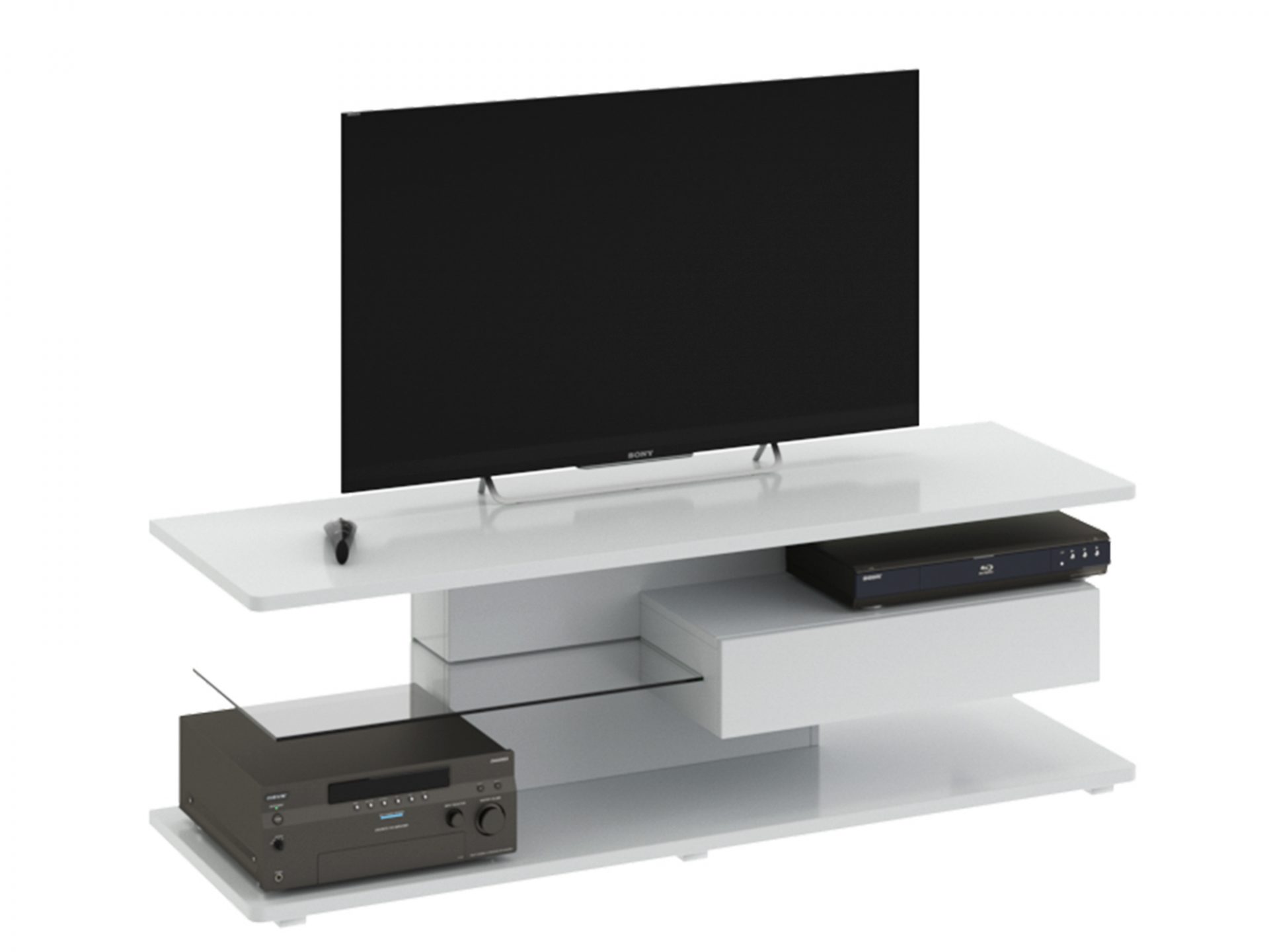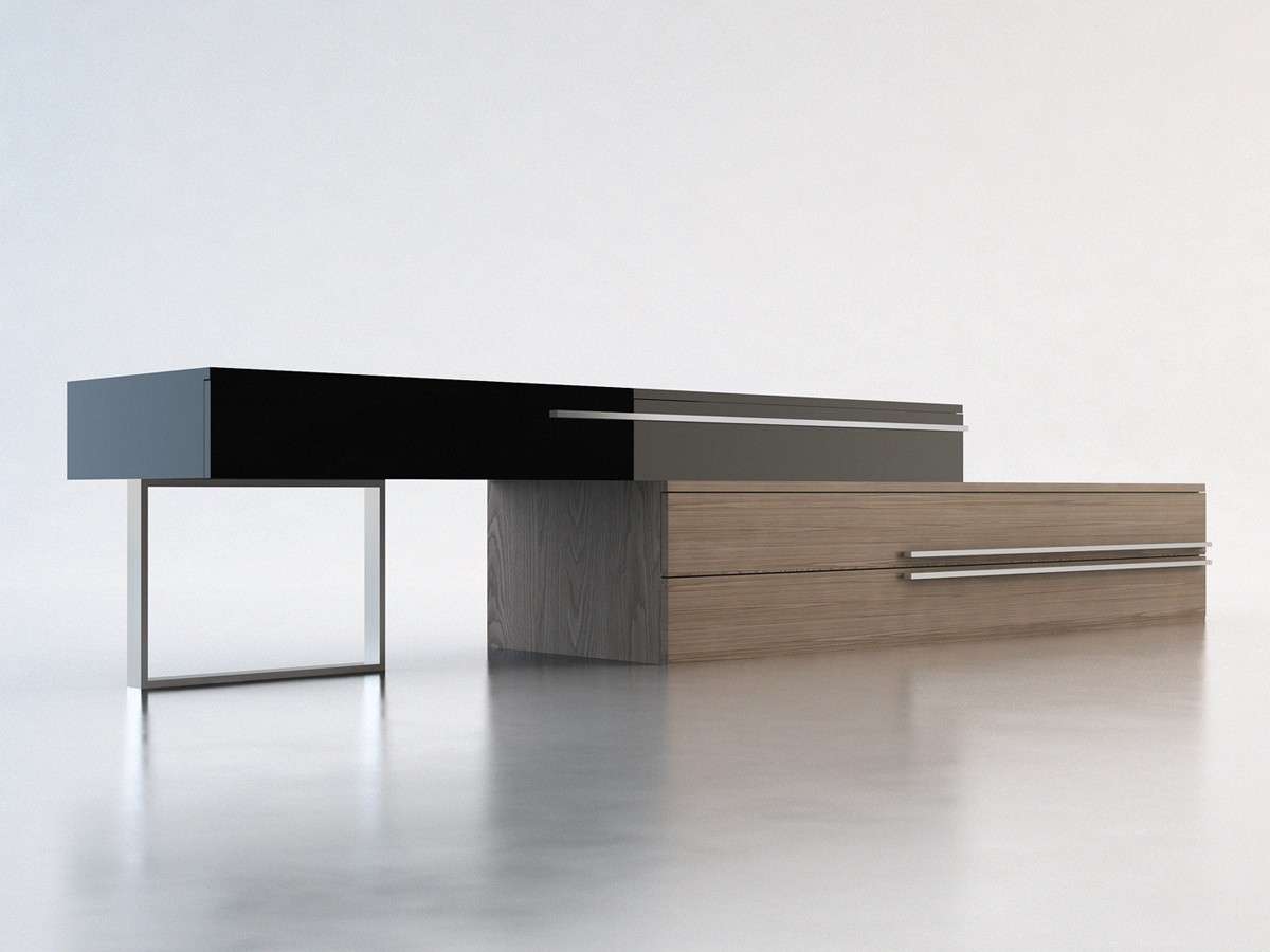 Sob o armário de TV, há um gabinete bastante amplo, caracterizado por uma pequena altura. De ano para ano, as televisões estão se tornando mais finas, além de mudar a aparência e as mesas de cabeceira. Sua instalação traz muitos pontos positivos:
