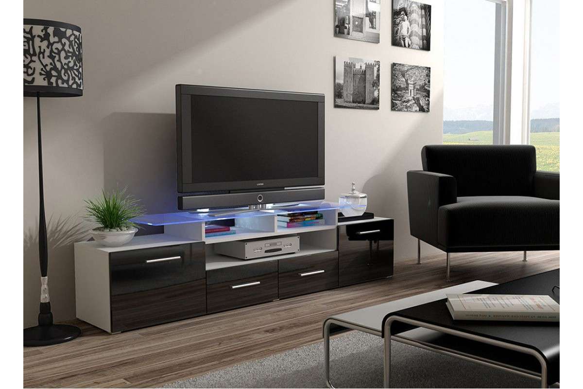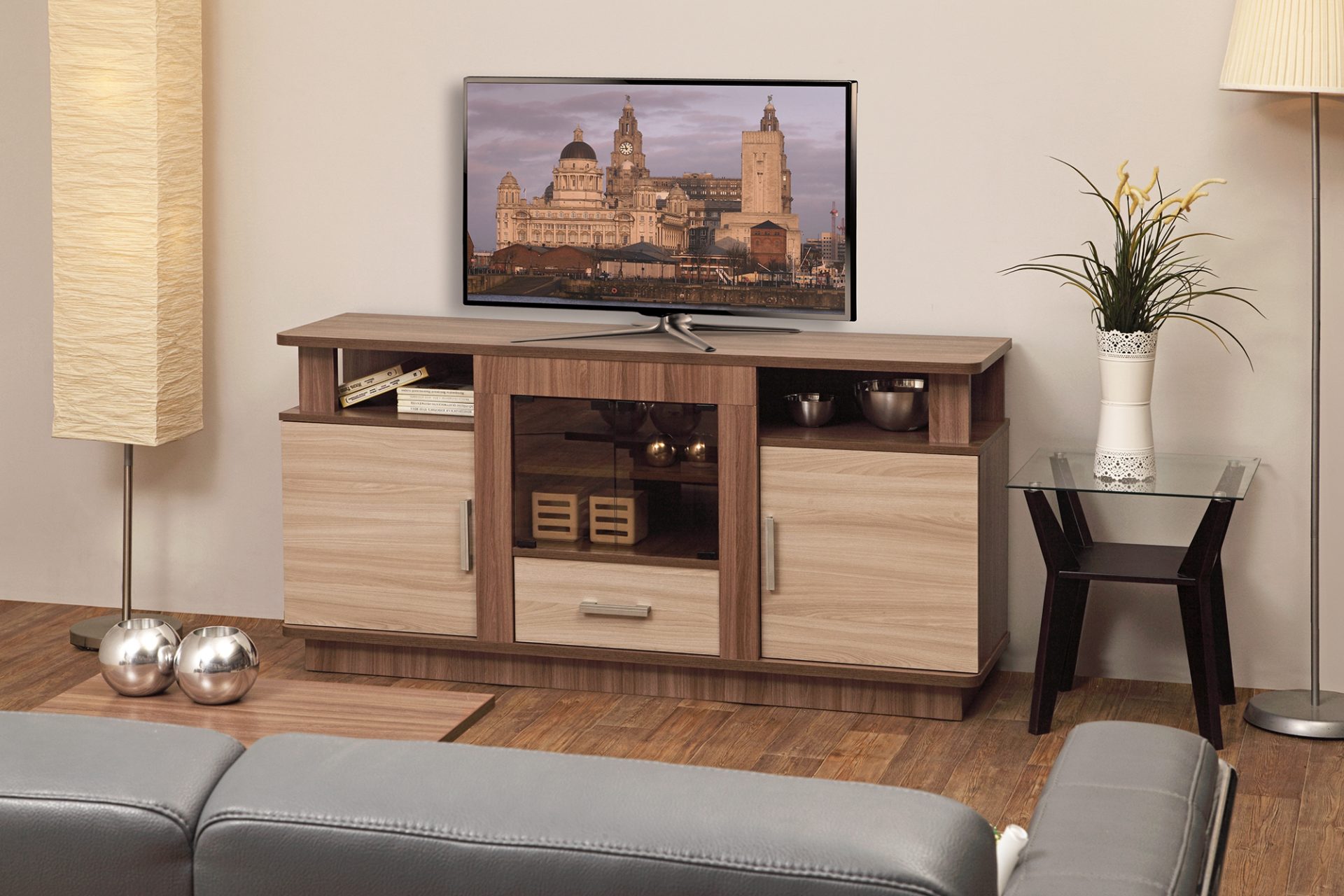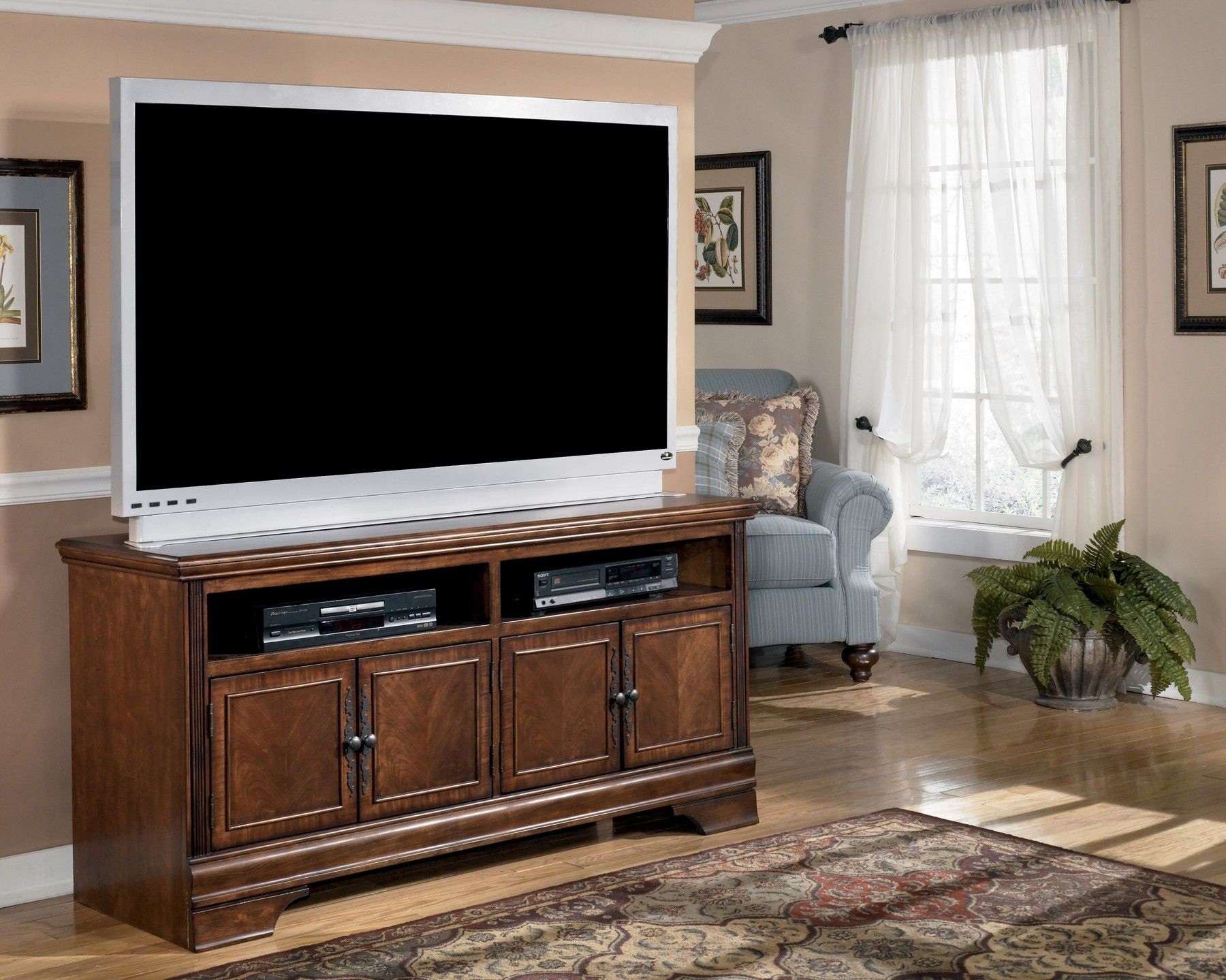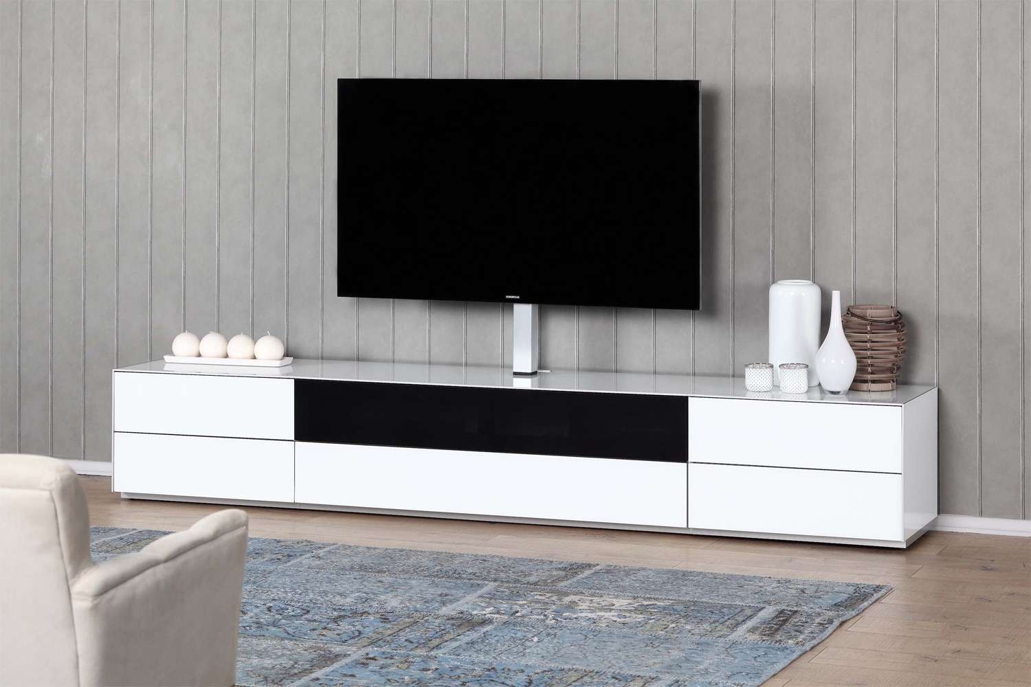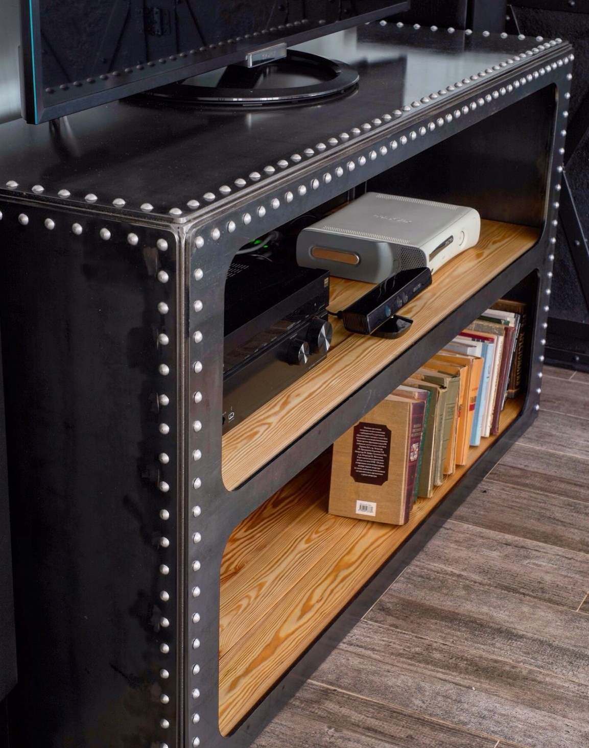Sob o armário de TV, há um gabinete bastante amplo, caracterizado por uma pequena altura. De ano para ano, as televisões estão se tornando mais finas, além de mudar a aparência e as mesas de cabeceira. Sua instalação traz muitos pontos positivos: