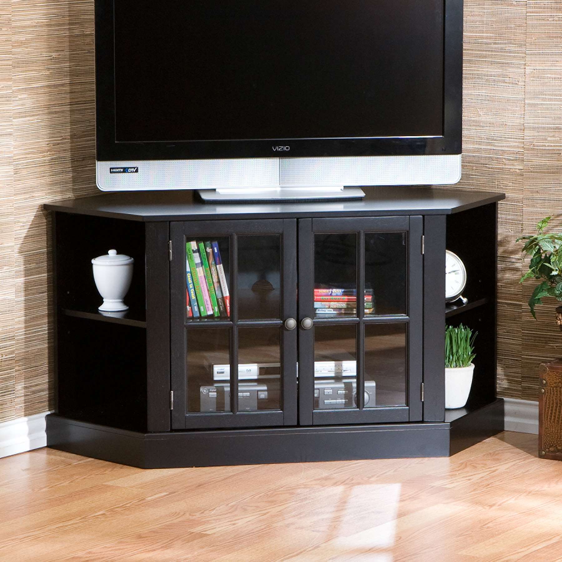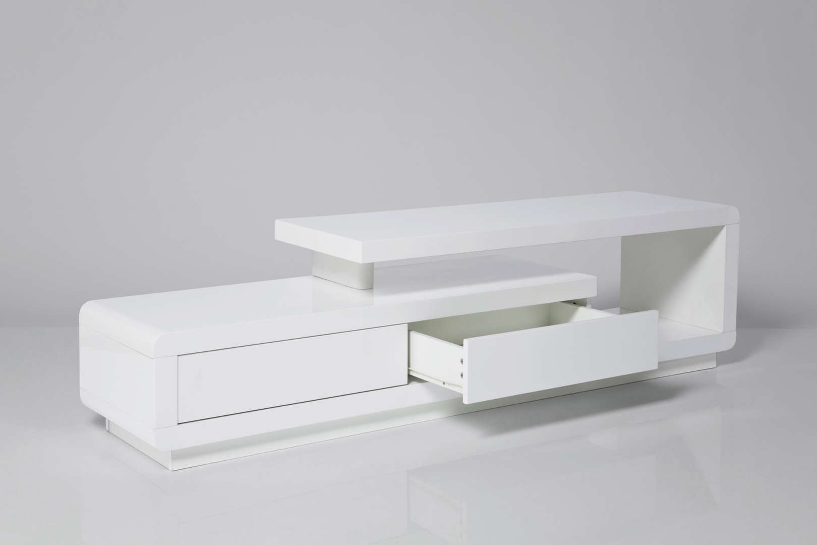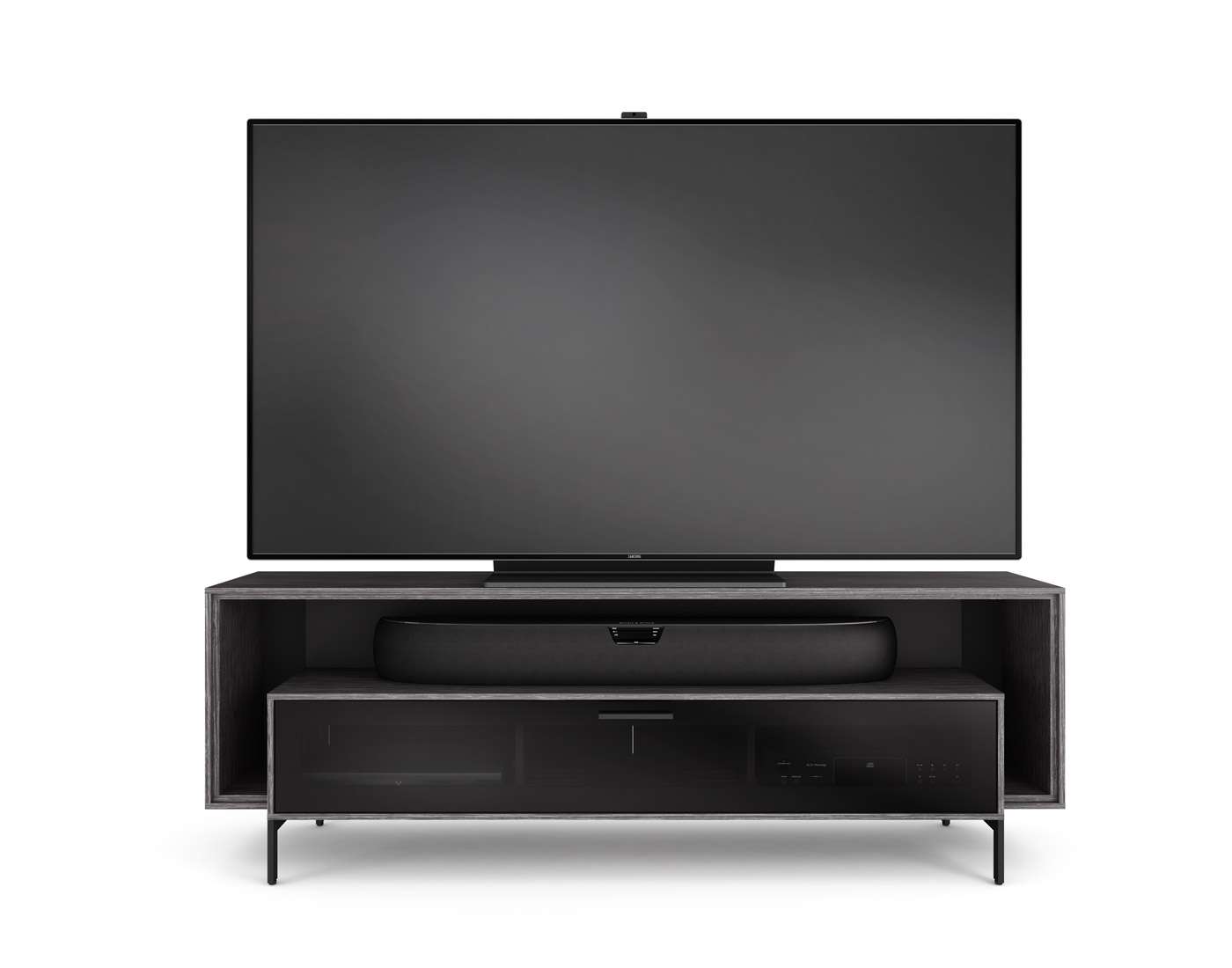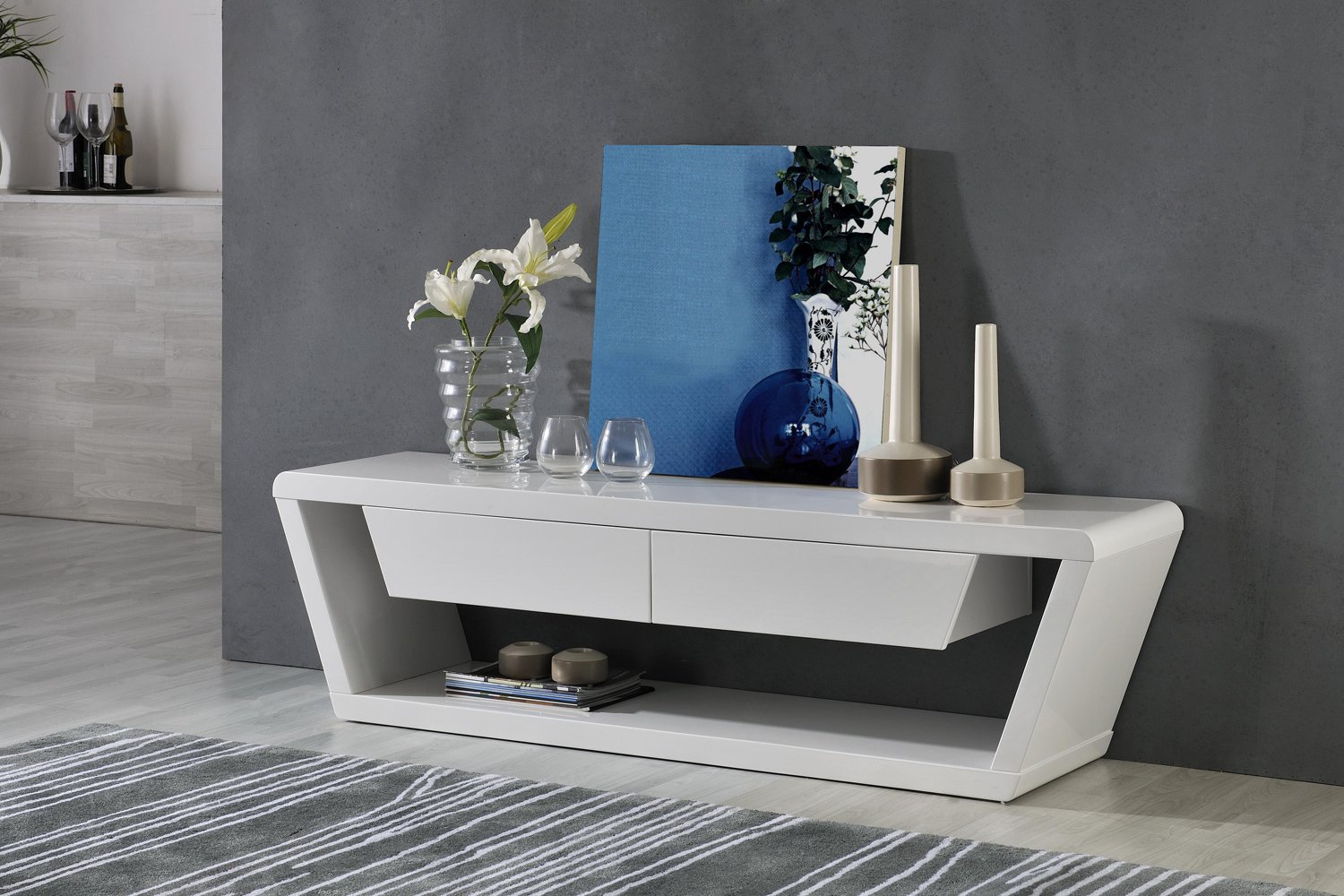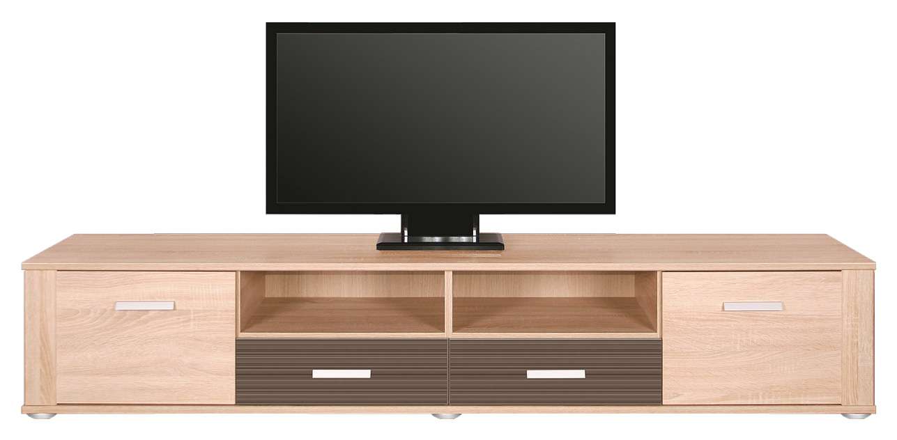 Sob o armário de TV, há um gabinete bastante amplo, caracterizado por uma pequena altura. De ano para ano, as televisões estão se tornando mais finas, além de mudar a aparência e as mesas de cabeceira. Sua instalação traz muitos pontos positivos: