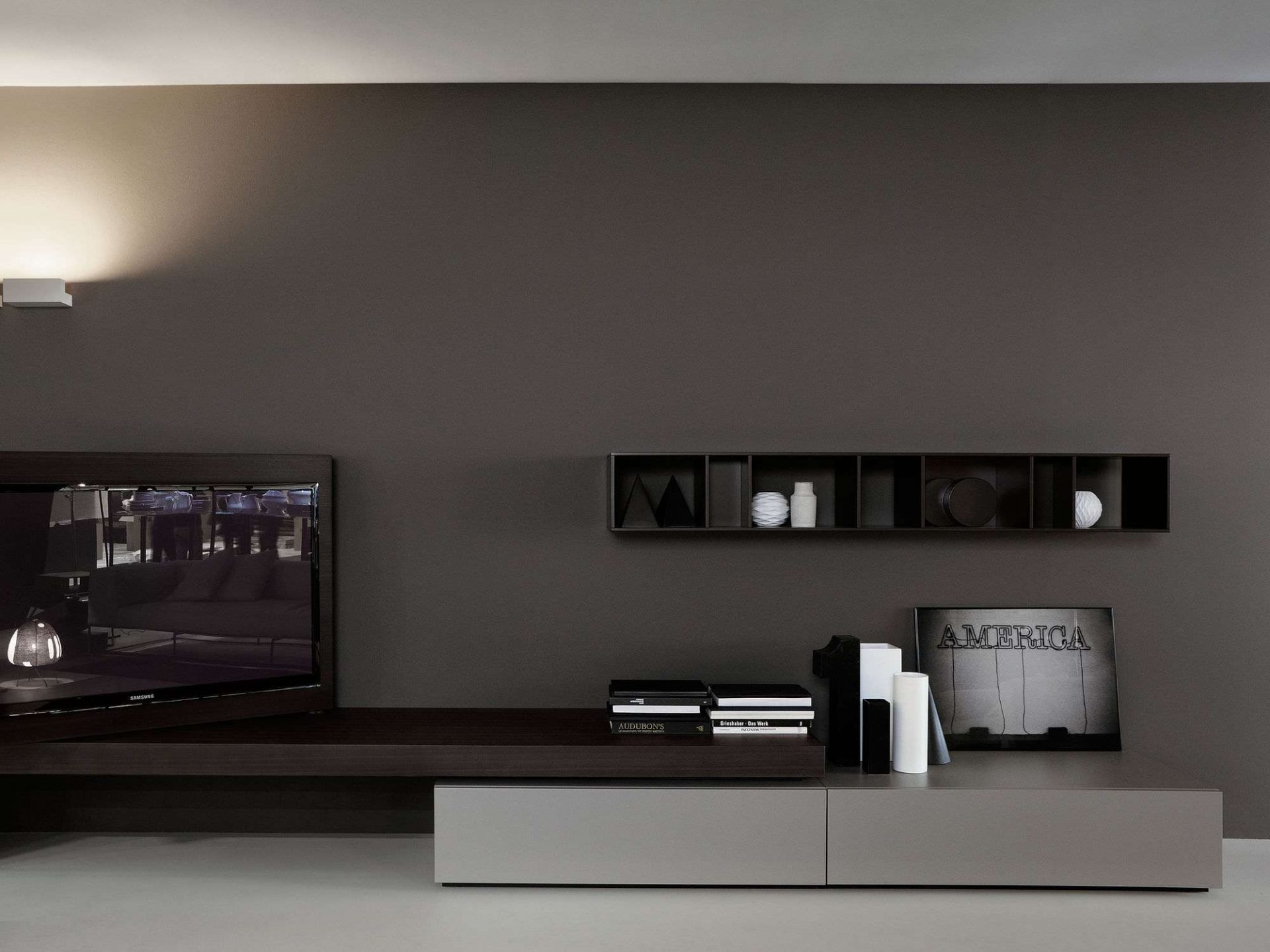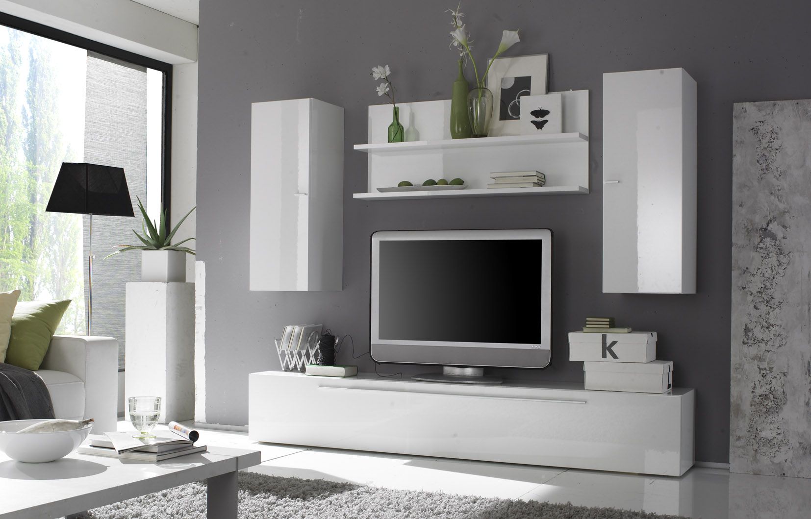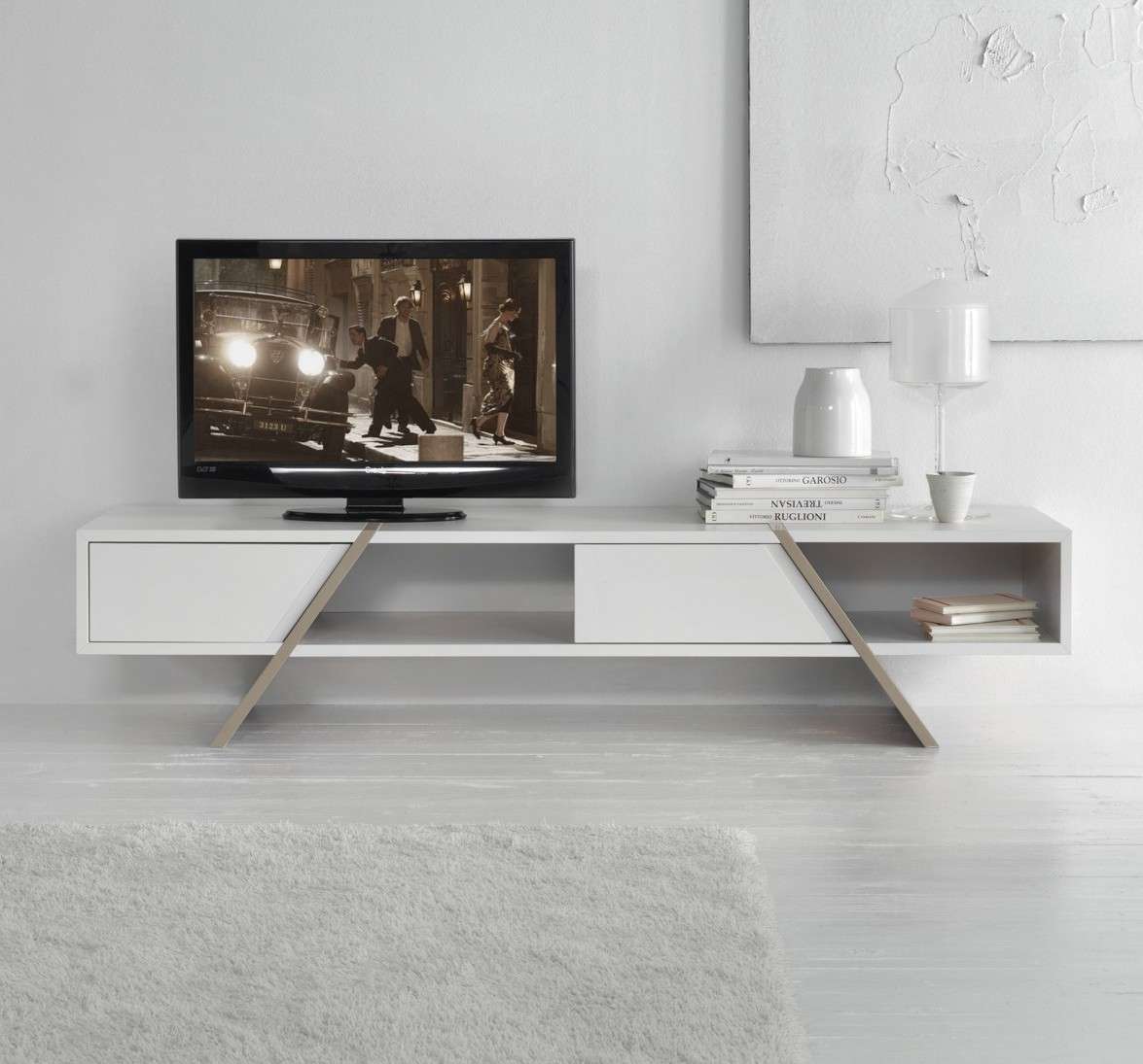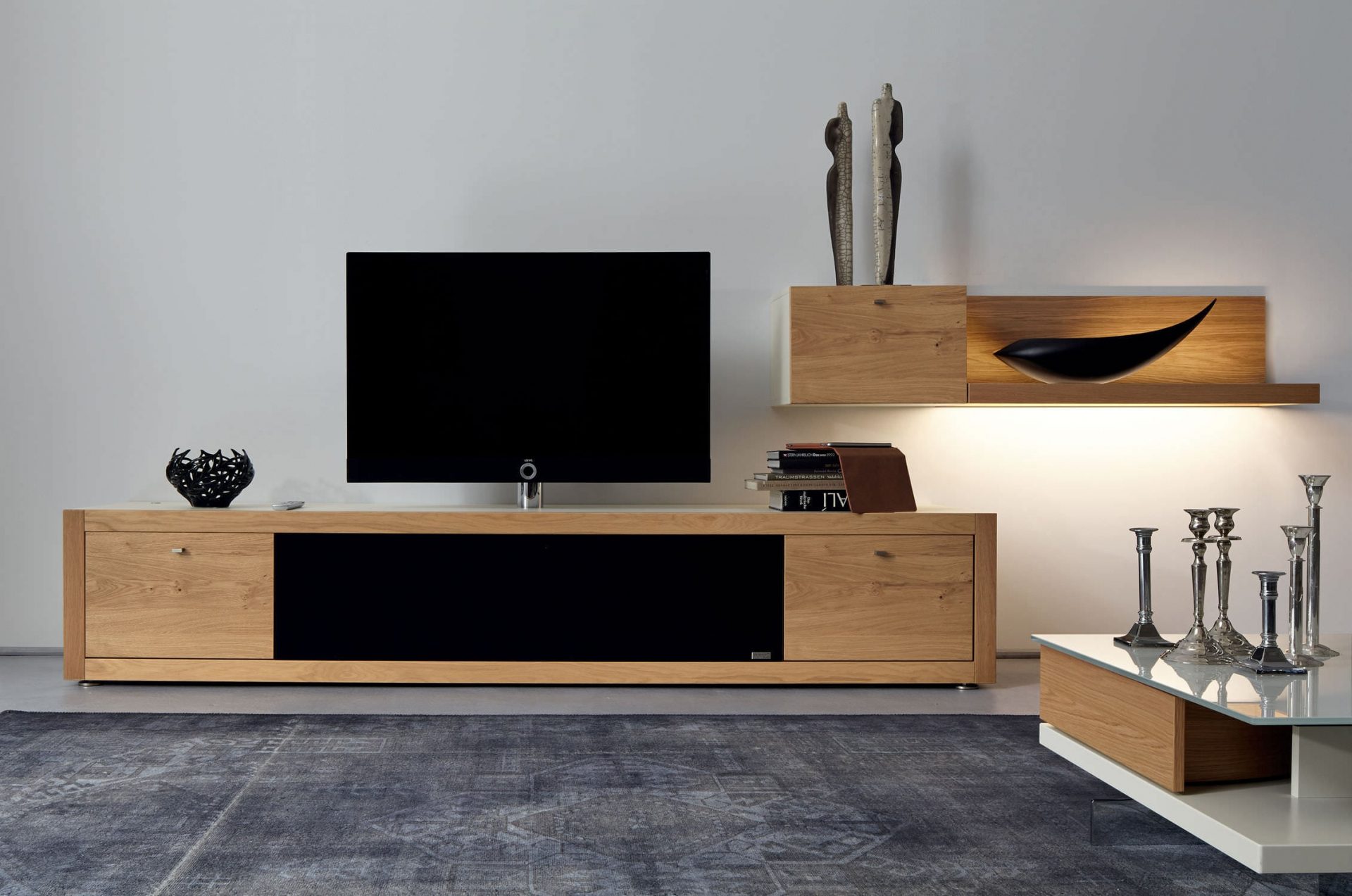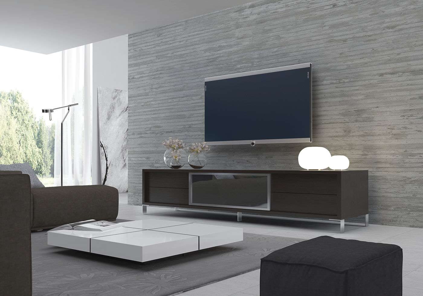 Mobiliário moderno sob a tela ajuda é uma decisão rentável e pensativa, organizando sabiamente a sala e liberando espaço. A abundância de formas e materiais aumentará o efeito do grande ecrã e tornará a ver televisão com a família e os amigos mais agradável.