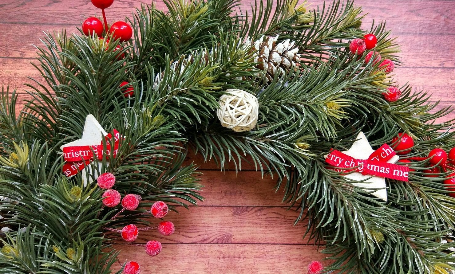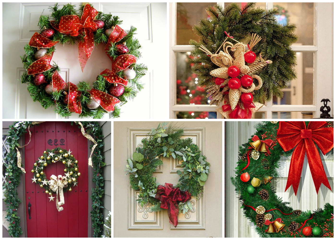 - Galhos de natal - amarre os ramos de abeto na forma de uma magnífica coroa de flores com fitas coloridas, amarre fitas com laços;