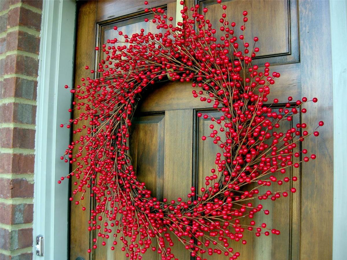 Uma linda coroa de flores na porta criará uma sensação de celebração.