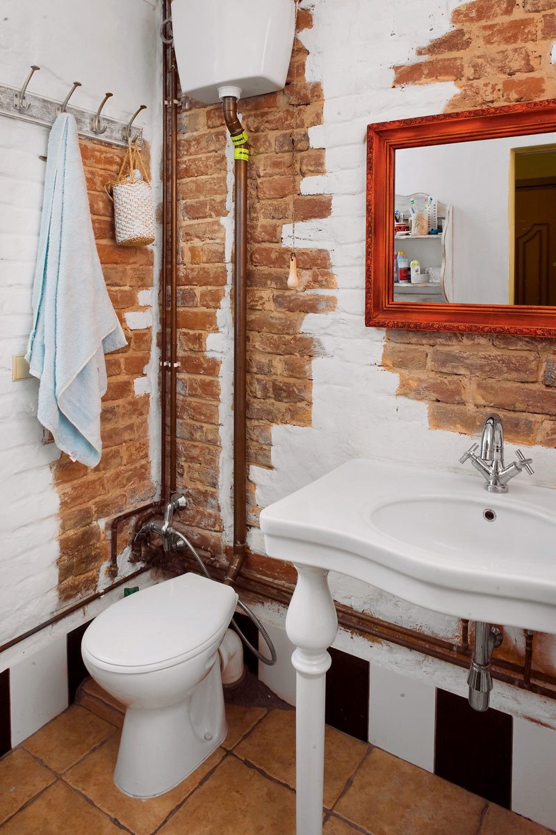 Nos lofts do banheiro e do toalete usados no encanamento no estilo alta tecnologia. Muitas vezes também encontrei modelos raros com um design incomum.