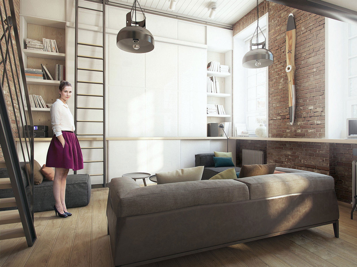 Se você tiver sorte e você possui apartamentos com tectos altos e aberto layoutentão você pode facilmente criar um loft confortável. Para isso, você precisa gastar um pouco de tempo e esforço. E tudo porque a base para o interior você está quase pronto, e só precisa ser complementado com móveis e decoração. Sala de estar deve: