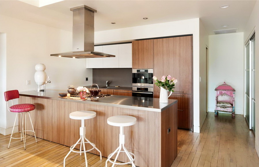 Para o design da cozinha, muitos designers escolhem pinturas ou esculturas de autores modernos, criam grafites em uma das paredes ou anexam cartazes feitos no estilo pin up. Esculturas do autor feitas de metal ou madeira, um quadro com fotografias ou itens de um mercado de pulgas parecem adequadas.