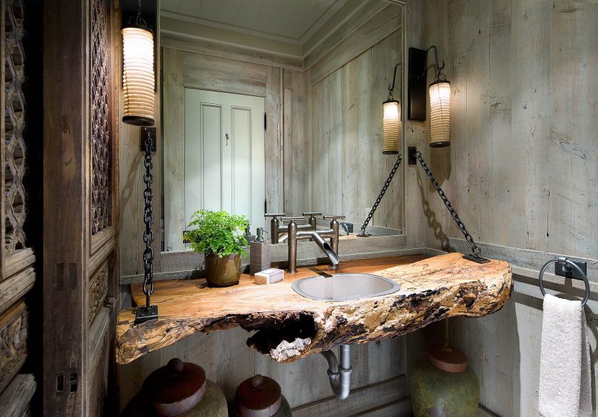 Esse mobiliário de madeira torna a vida no banheiro habitável e confortável.