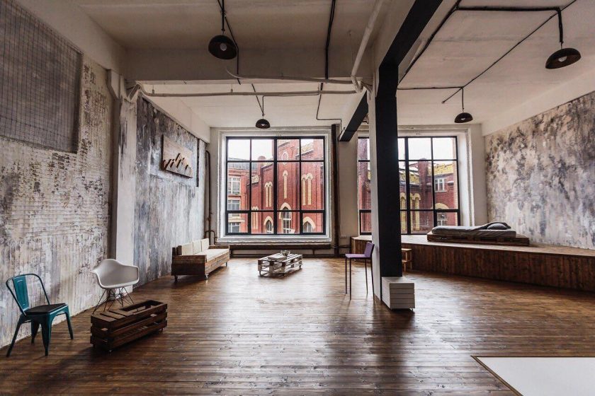 Para este estilo, edifícios adequados com tetos de 4 metros, grandes janelas e um layout espaçoso, sem divisórias