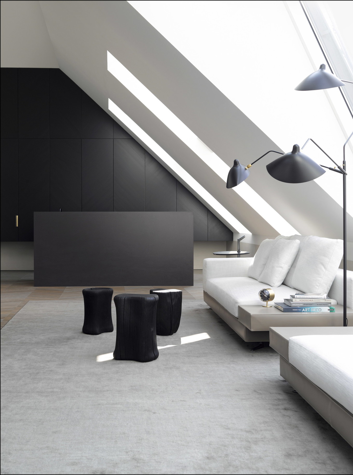 Um quarto É considerado o local mais confortável da casa e a área de lugares sentados nos espaçosos Lofts não é uma exceção. Pode ser protegido por divisórias corrediças e, se a altura do teto permitir, basta passar para o segundo andar. Neste caso, encomende ou construa uma escada confortável feita de madeira, metal, pedra ou concreto.