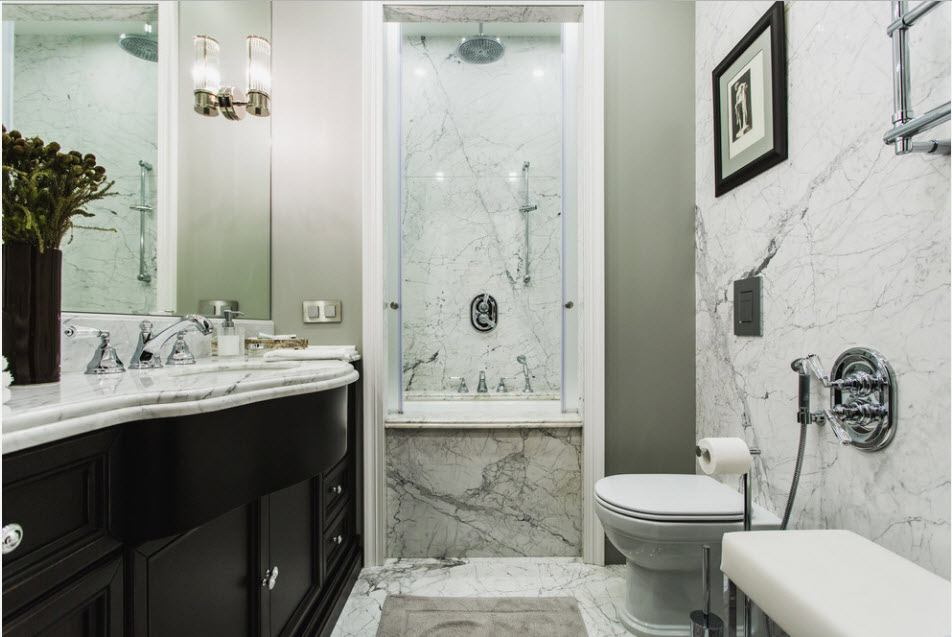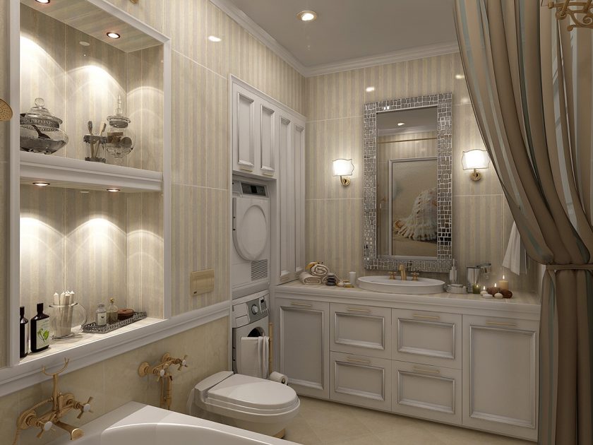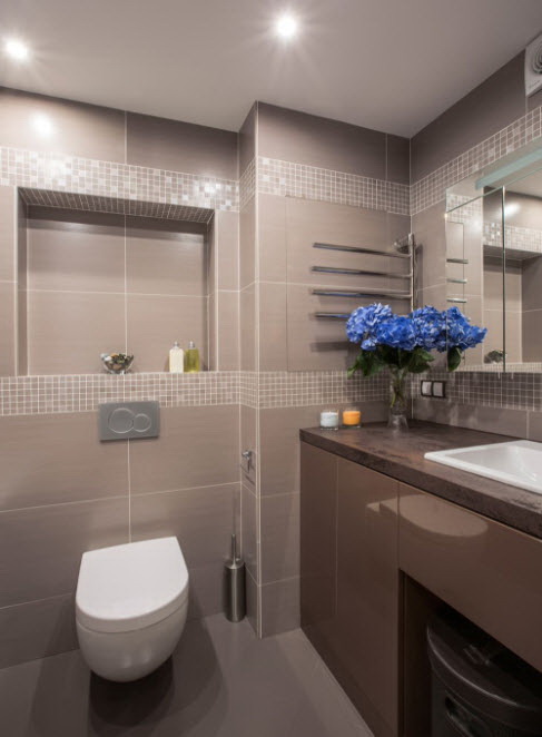 Neste caso, recomenda-se combinar a casa de banho com uma casa de banho, o que lhe permitirá maximizar o espaço.