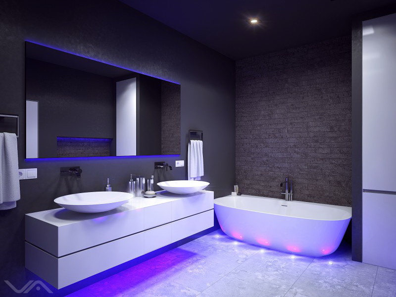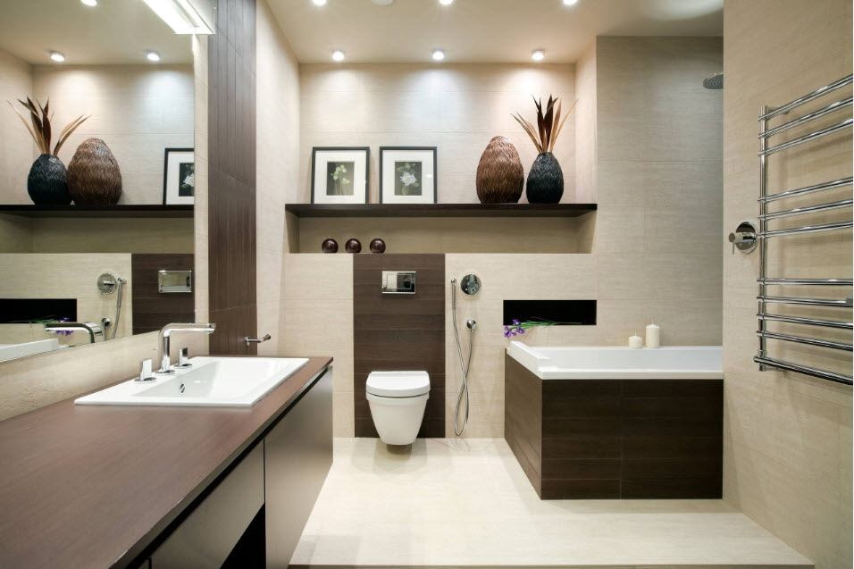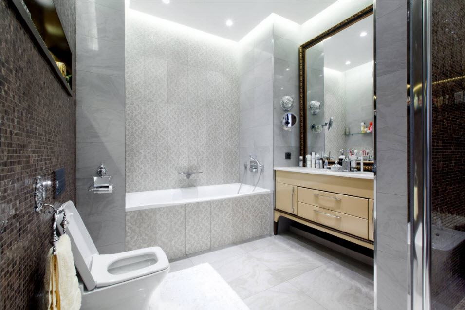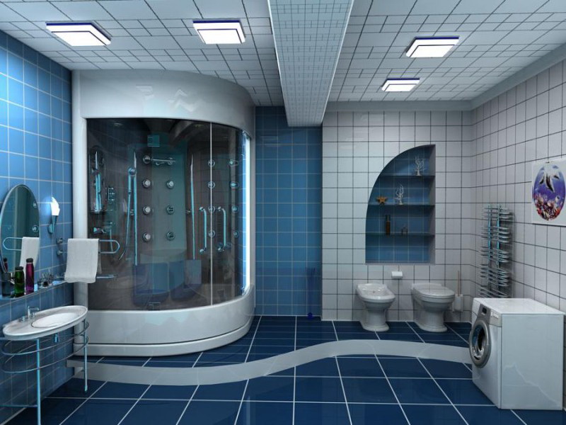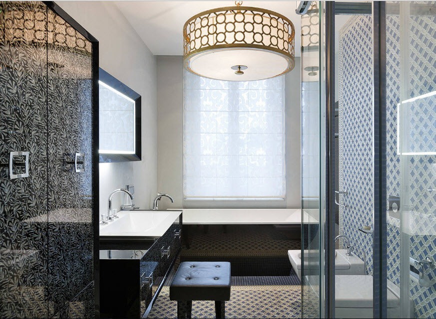 Infelizmente, nos apartamentos da cidade nos banheiros o projeto das janelas não é fornecido e por isso perdem fora da cidade casas. Neste caso, você precisará criar no banheiro a iluminação mais luminosa e confortável com a ajuda do lustre do teto e da parede. luminárias.