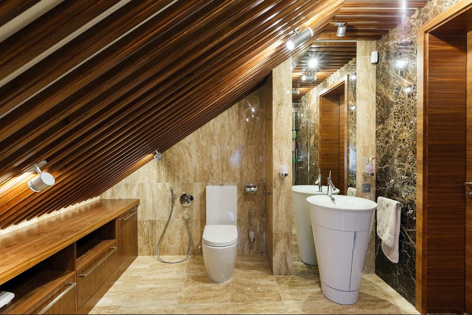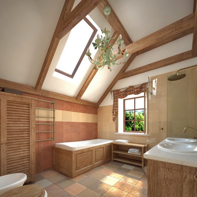 Sem vigas Você pode sem elas. Material para acabamento do teto do banheiro pode ser diferente. Devo dizer que a "velha Provence" negou categoricamente os tetos feitos de materiais artificiais.