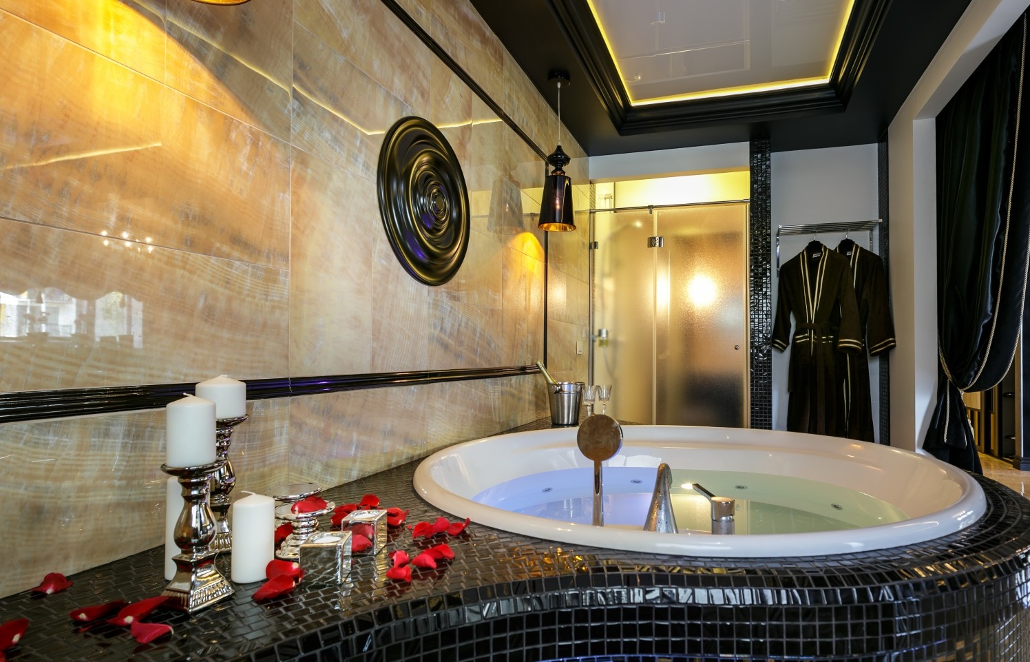 - Versão preto e branco dará rigor ao design. Jacuzzi em design redondo ou oval realçar perfeitamente o estilo geral da sala.
