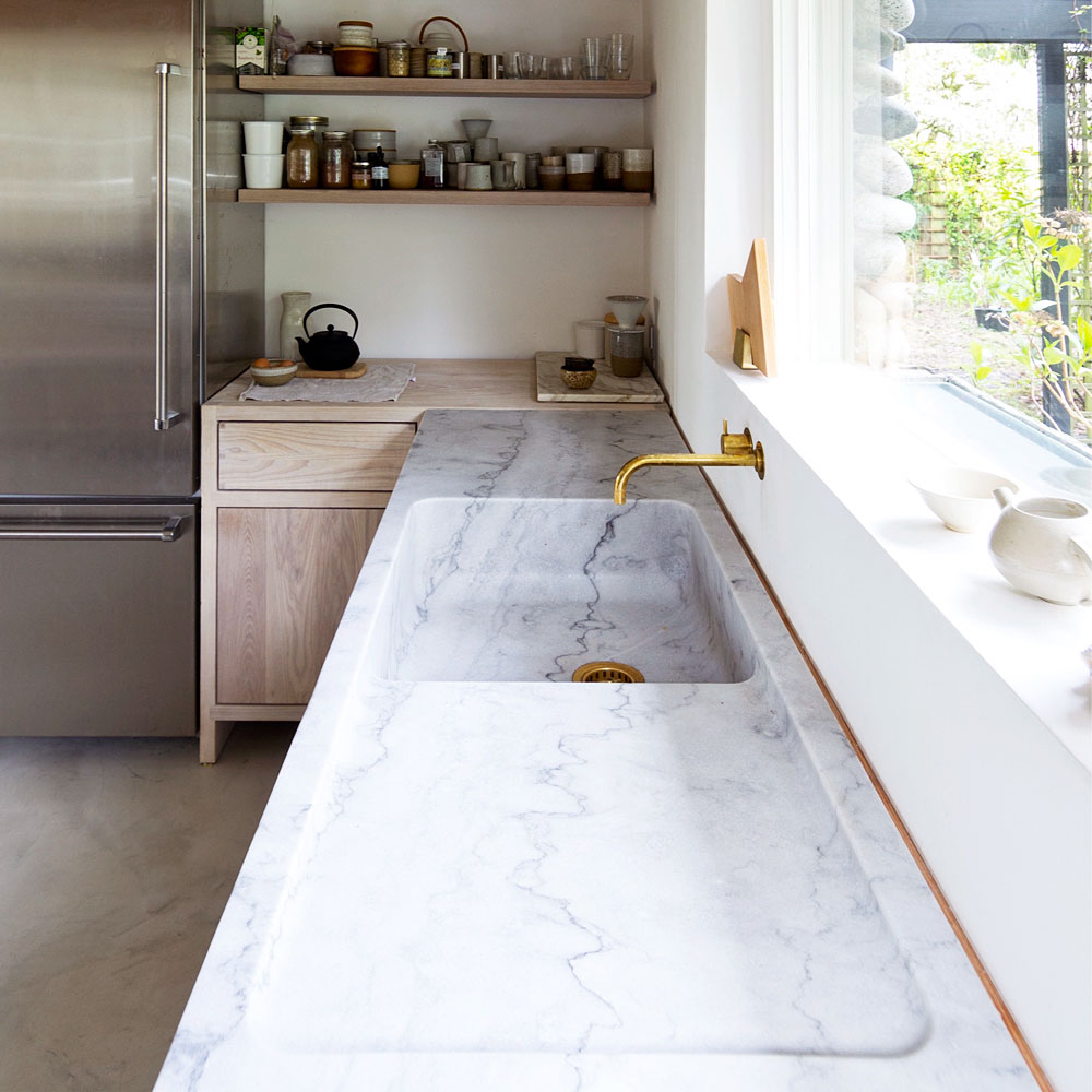 Claro, isso não significa que você precisa remover urgentemente as bancadas de mármore - elas são atemporais. E alguns toques de mármore aqui e ali podem ser lindos. Mas, em geral, a tendência do mármore está se afastando lentamente. Em vez disso, escolha alguns materiais terrestres, como madeira, argila e metal com um acabamento desgastado.
