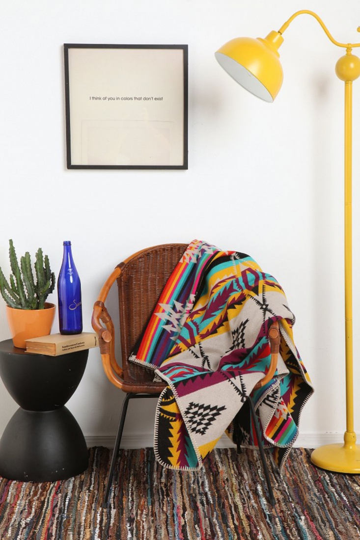 Não subestime a expressividade dos tecidos e os acentos que eles trazem para a sala, especialmente nos meses frios. Pendure cestos planos para focar na parede, coloque as plantas em suportes de vime ou substitua a sua luminária por uma luminária de chão pendurada.