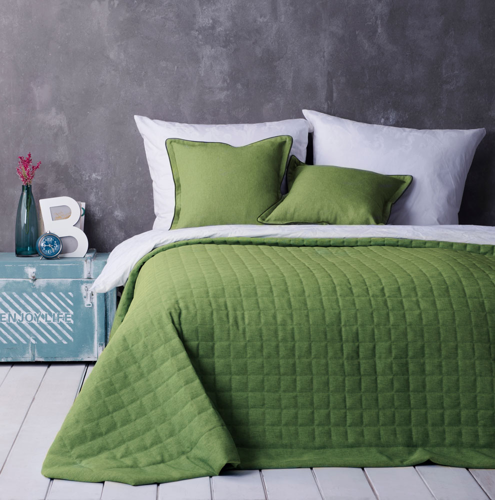 Tente algo mais emocionante nesta temporada do que lençóis brancos. Hoje, padrões completamente diferentes que podem ser combinados entre si são relevantes - experimente monogramas e monogramas e não tenha medo de combiná-los com outros padrões.