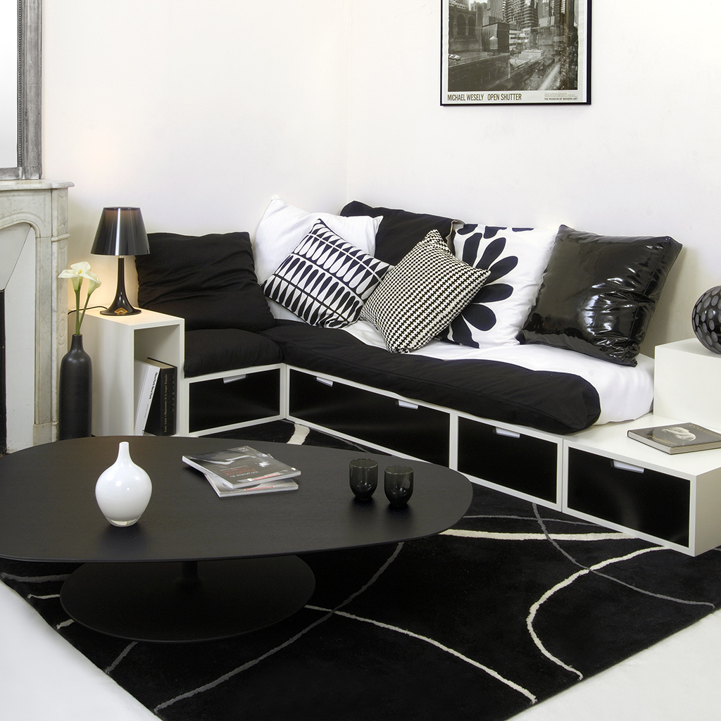 Uma maneira fácil de manter uma pequena sala livre de confusão é escolher móveis com espaço de armazenamento para itens, como uma mesa de centro com uma prateleira abaixo, um banco com caixas sob ela e uma otomana com tampo removível e espaço vazio no interior.